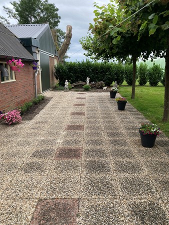 Aan de achterzijde van de woning bevindt zich een aanbouw/tussenruimte van circa 24 m² met plat dak. Deze ruimte sluit aan op de bijkeuken en biedt tal van gebruiksmogelijkheden. De woning beschikt tevens over een ruime, moderne badkamer, voorzien van een douche, ligbad, wastafel en toilet: een comfortabele plek om heerlijk te ontspannen.