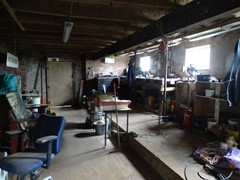 Op het erf bevindt zich een rechte loods met een oppervlakte van circa 150 m², ideaal te gebruiken als ruime opslag- of werkruimte. De loods is solide opgebouwd met steensmuren, een dak van damwandplaten en een houten spantconstructie. Daarnaast is de loods voorzien van een drijfmestkelder, wat extra functionele mogelijkheden biedt voor agrarisch of bedrijfsmatig gebruik.