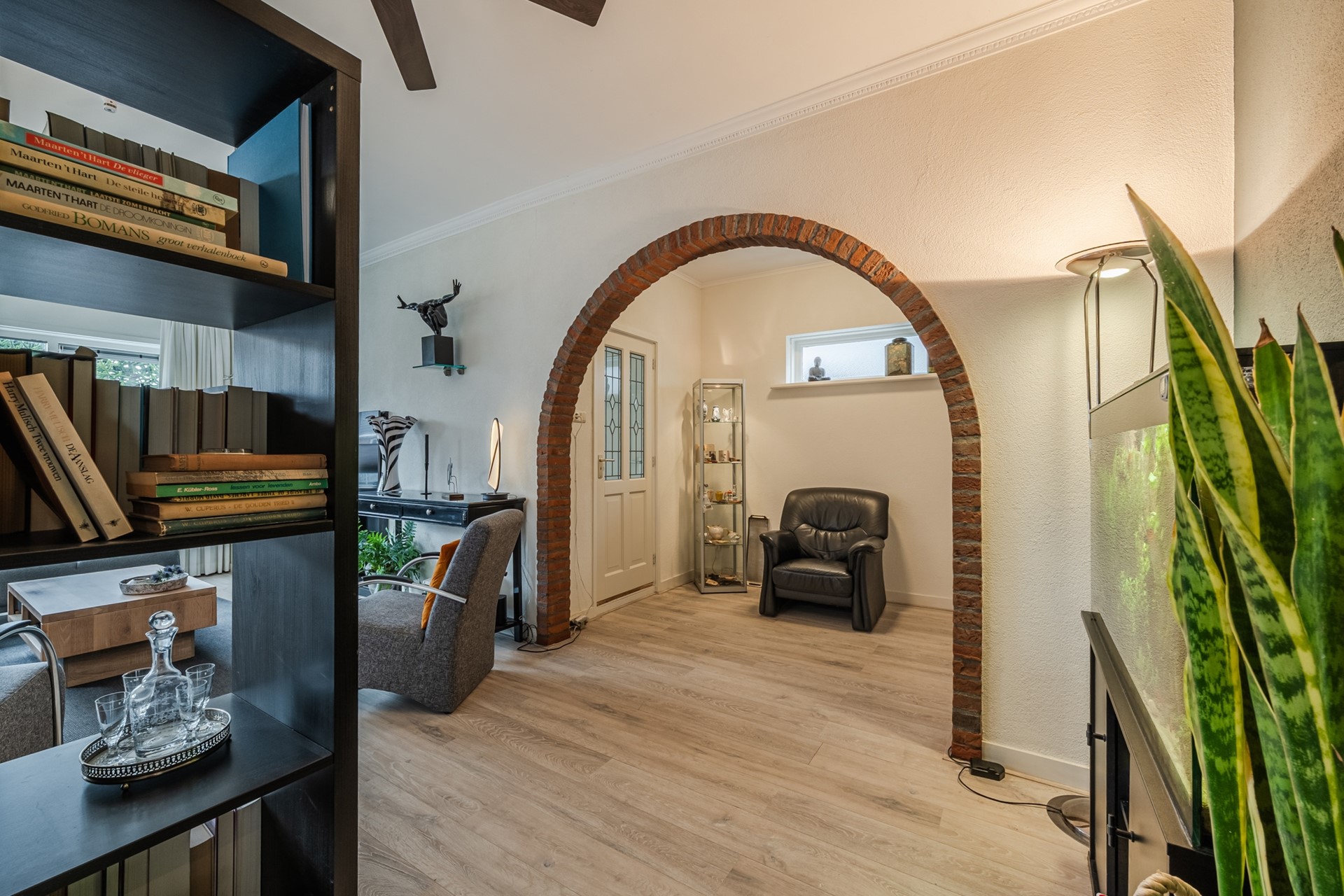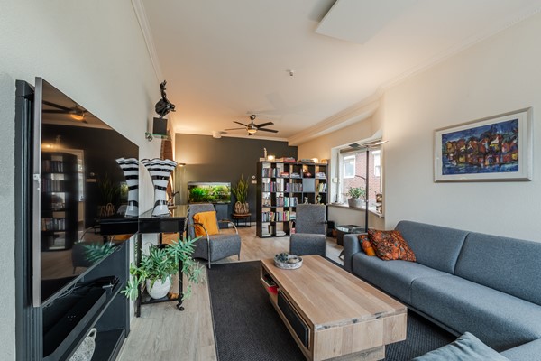 - Woonkamer met laminaat vloer en rookkanaal