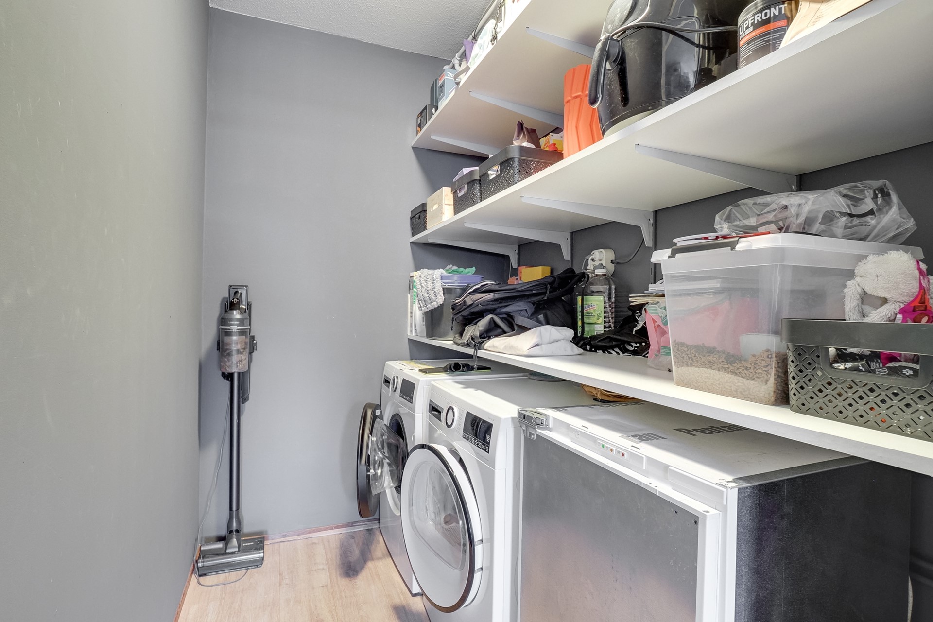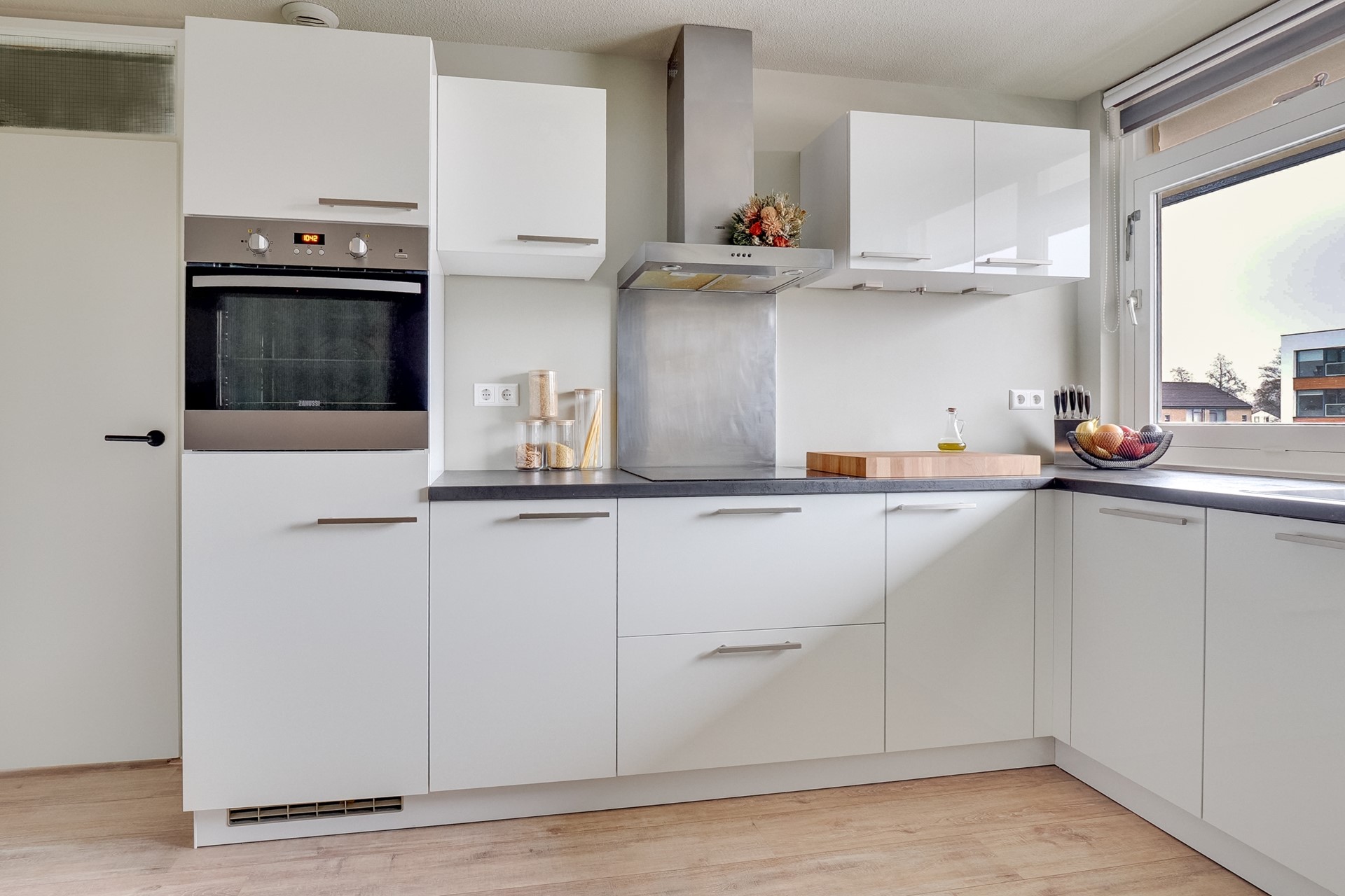 De keuken is netjes, praktisch en overzichtelijk ingericht. Alles wat je nodig hebt zit erin, en het geheel oogt fris en verzorgd. Of je nu snel iets klaarmaakt of uitgebreid kookt in het weekend — hier kan het allemaal zonder gedoe.