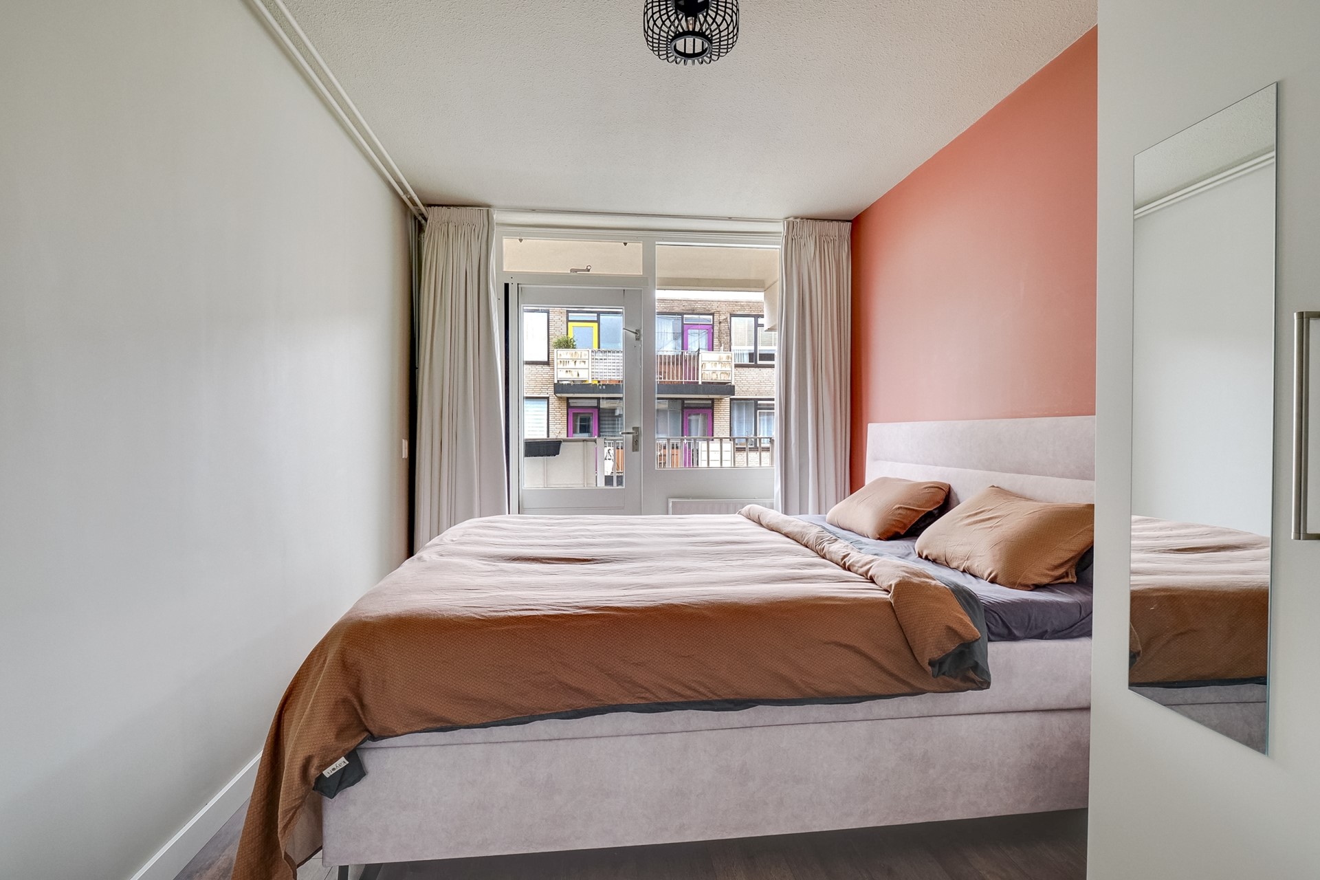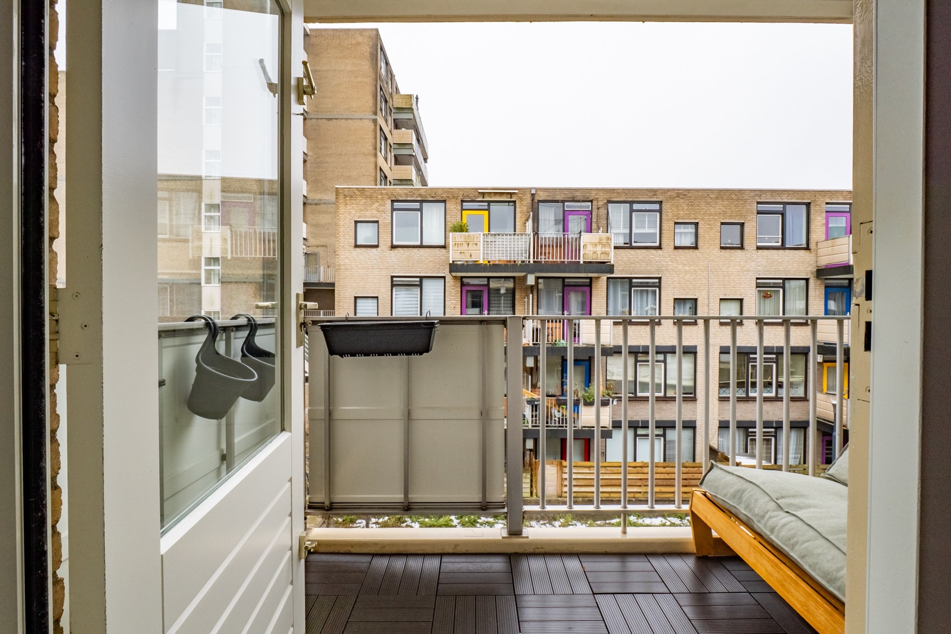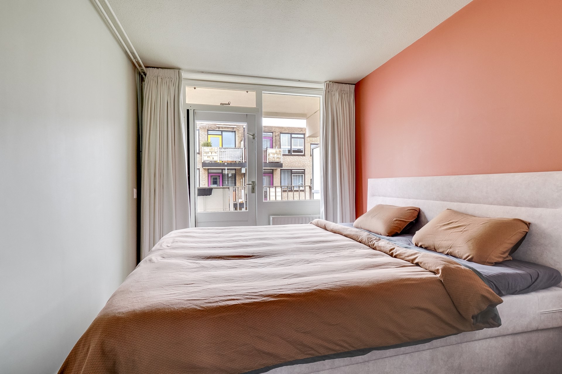 En dan dat balkon… een heerlijke bonus. Gelegen op de juiste plek om in de namiddag en vroege avond van de zon te genieten. Zet een stoel neer, schenk een drankje in en laat de dag rustig wegglijden. Je hoort de stad zachtjes op de achtergrond, voelt de zon op je gezicht en merkt hoe fijn het is om een eigen buitenplek te hebben — ook in een appartement.