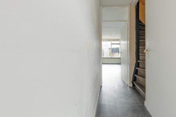 Via de entree met hal, meterkast, toilet en trapopgang kom je in de lichte doorzonwoonkamer. De grote ramen zorgen voor veel daglicht en een prettige verbinding tussen de woon- en eetruimte. De vloer is afgewerkt met PVC, wat zorgt voor een moderne uitstraling. De woning beschikt over vloerverwarming, al dient de pomp nagekeken te worden. Wanden zijn afgewerkt met structuurverf en het plafond met spacwerk.