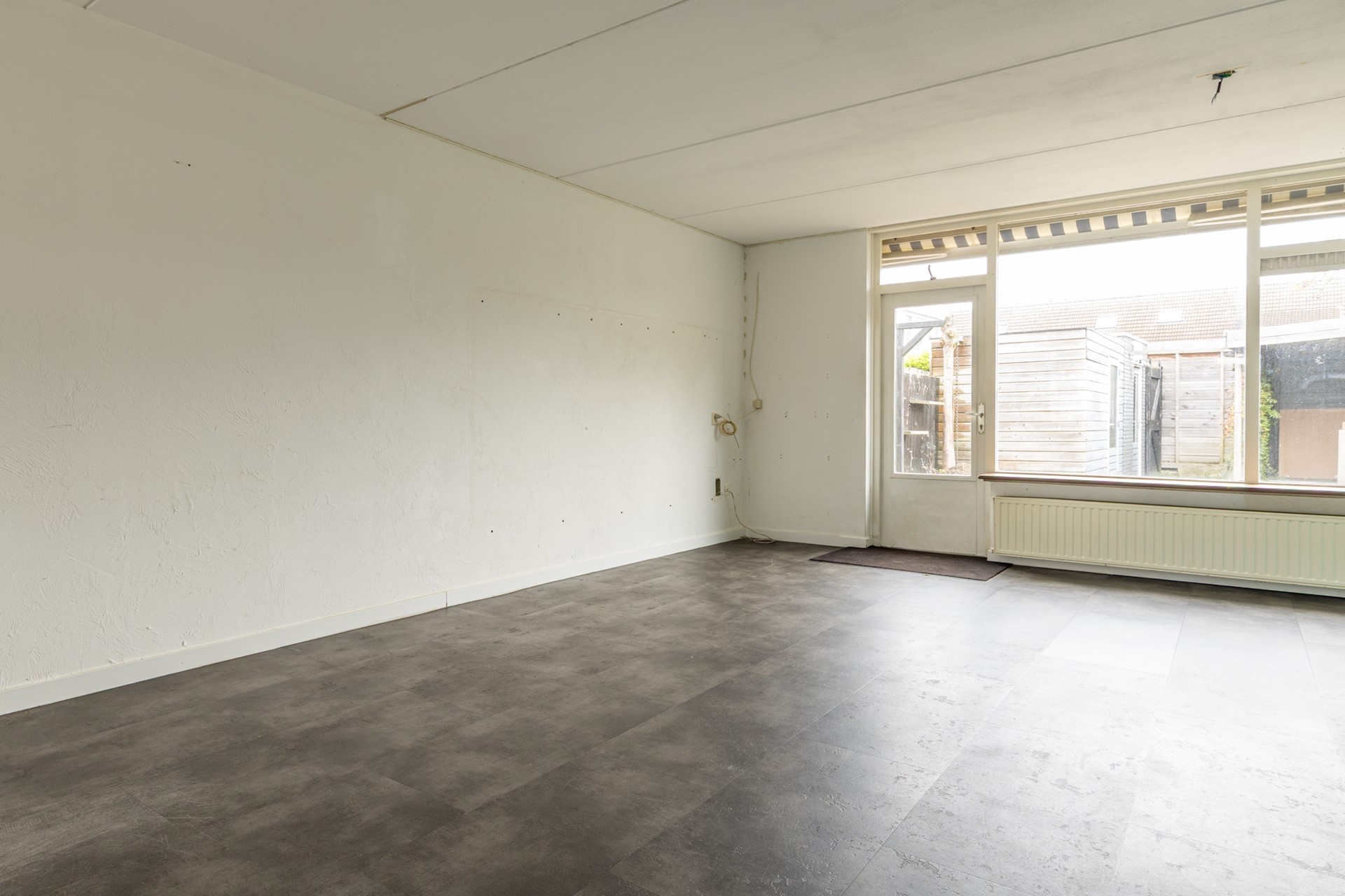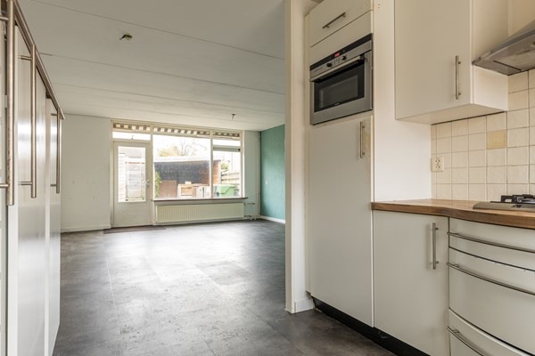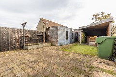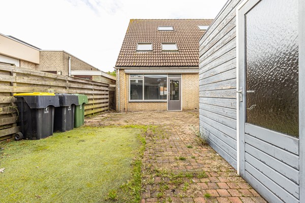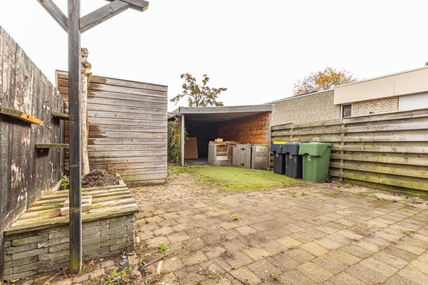 Vanuit de woonkamer is er toegang tot de achtertuin: een prettige buitenruimte op het oosten met volop mogelijkheden om naar eigen smaak aan te leggen. Achter in de tuin staat een vrijstaande houten berging, ideaal voor fietsen of tuinspullen, en via de achterom bereik je eenvoudig de straatzijde.