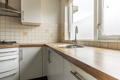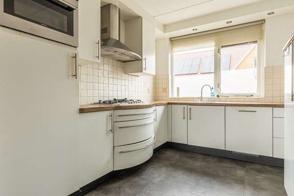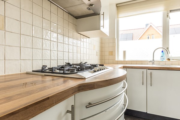 De open keuken aan de voorzijde is praktisch ingericht en voorzien van een combi-oven, koelkast, 5-pits gaskookplaat, afzuigkap en vaatwasser. Dankzij de open opstelling blijft het contact met de woonkamer behouden en kun je gezellig koken terwijl je met je gezelschap in verbinding blijft.