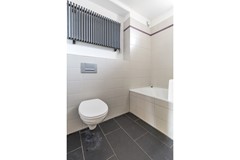 De overloop biedt toegang tot drie slaapkamers en de badkamer. Alle slaapkamers zijn voorzien van laminaatvloeren en afgewerkt met behangwanden. De badkamer beschikt over een ligbad/douchecombinatie, wastafel en tweede toilet. Met een eigentijdse update kun je hier een frisse en functionele gezinsbadkamer realiseren.