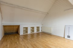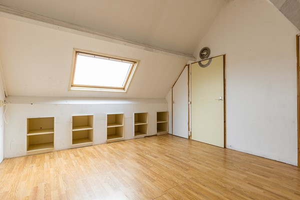 Via een vaste trap kom je op de zolderverdieping, waar zich de cv-installatie bevindt. Dankzij het dakraam is deze ruimte licht en goed bruikbaar als vierde slaapkamer, kantoor of hobbyruimte. Met wat afwerking maak je er eenvoudig een volwaardige verdieping van.