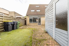 De achtertuin ligt op het oosten en meet circa 12,5 meter diep en 5,5 meter breed. Er is ruimte genoeg voor een terras, speelplek of beplanting. De tuin biedt veel privacy en grenst aan een rustige omgeving. Een houten berging en praktische achterom maken het geheel compleet.