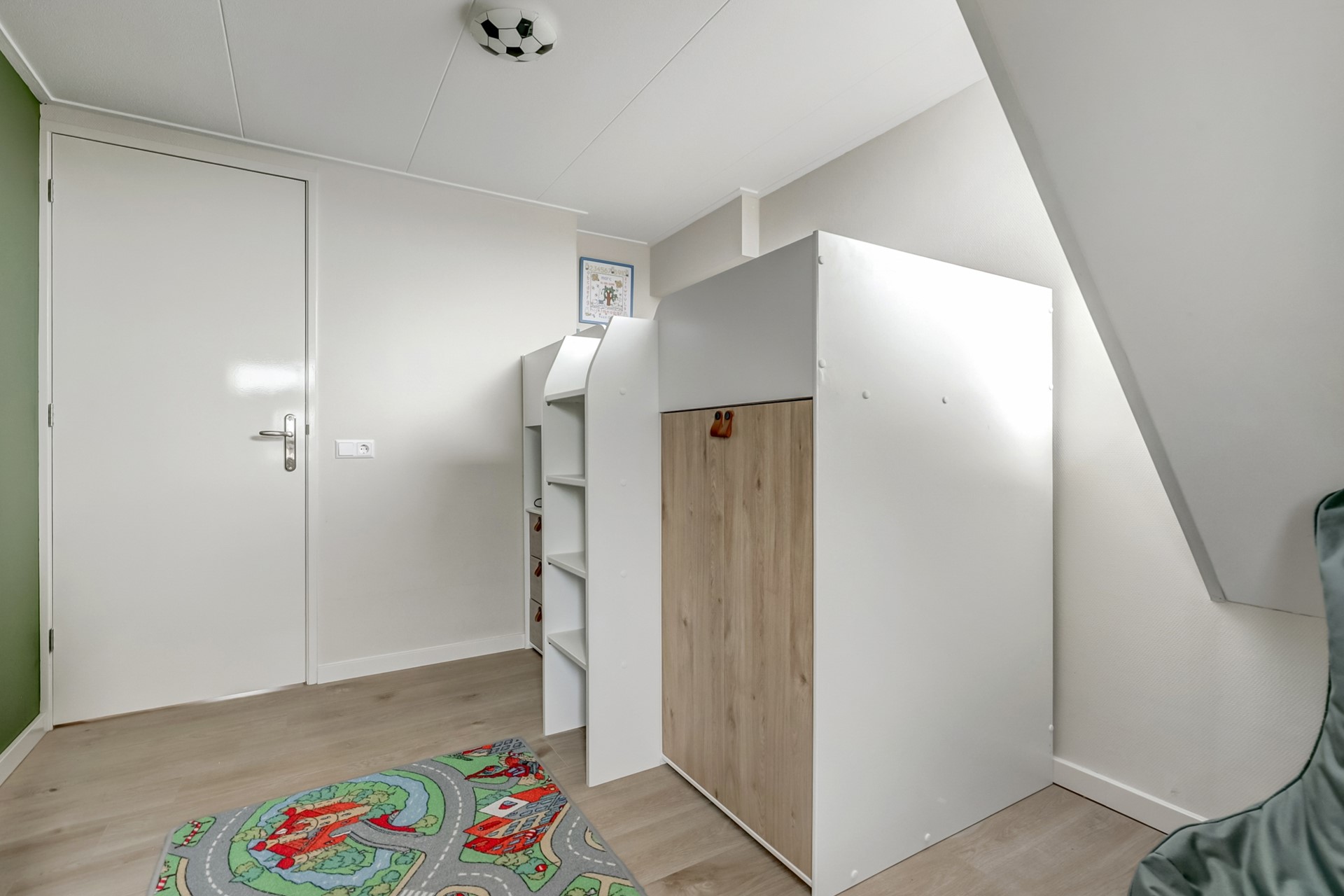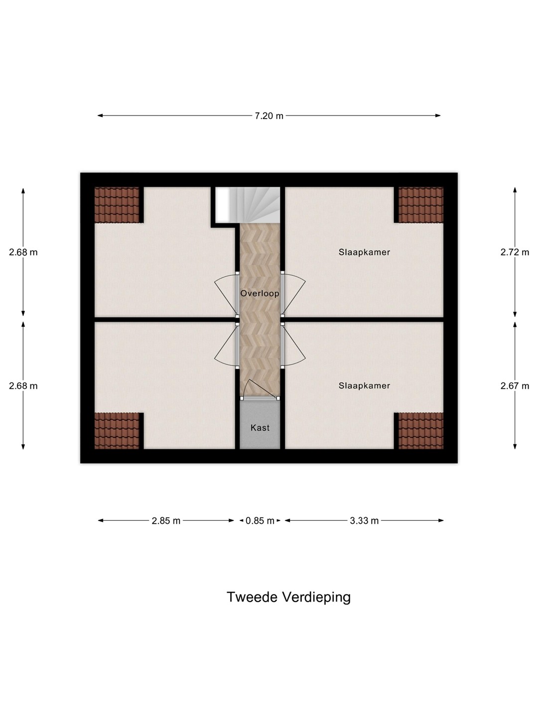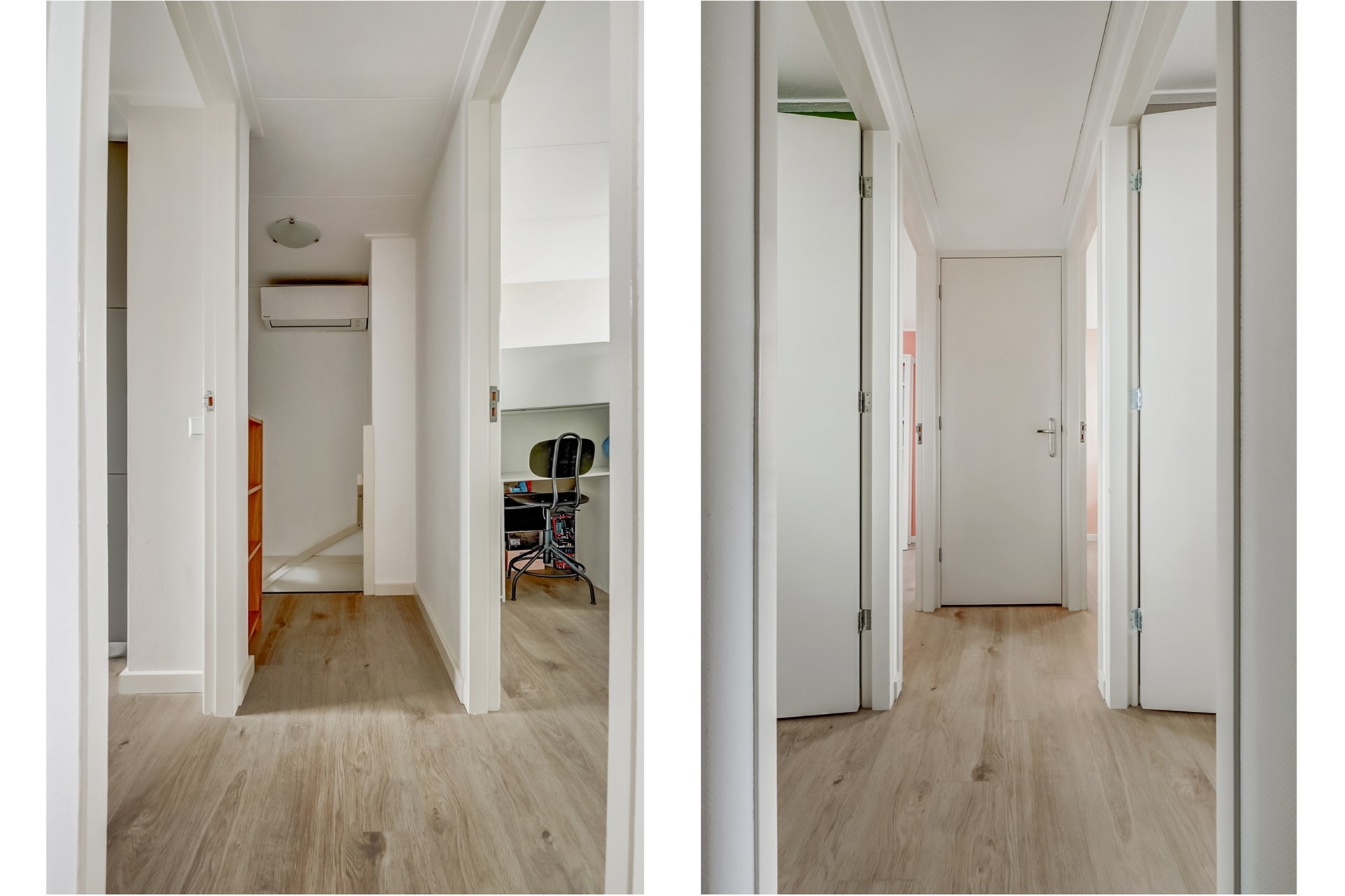 Overloop voorzien van airconditioning (2020) inbouwkast. Vier volwaardige slaapkamers, door de overloop in het midden zijn deze allen goed bereikbaar. De airconditioning houdt het hier lekker koel maar kan ook als verwarming gebruikt worden.