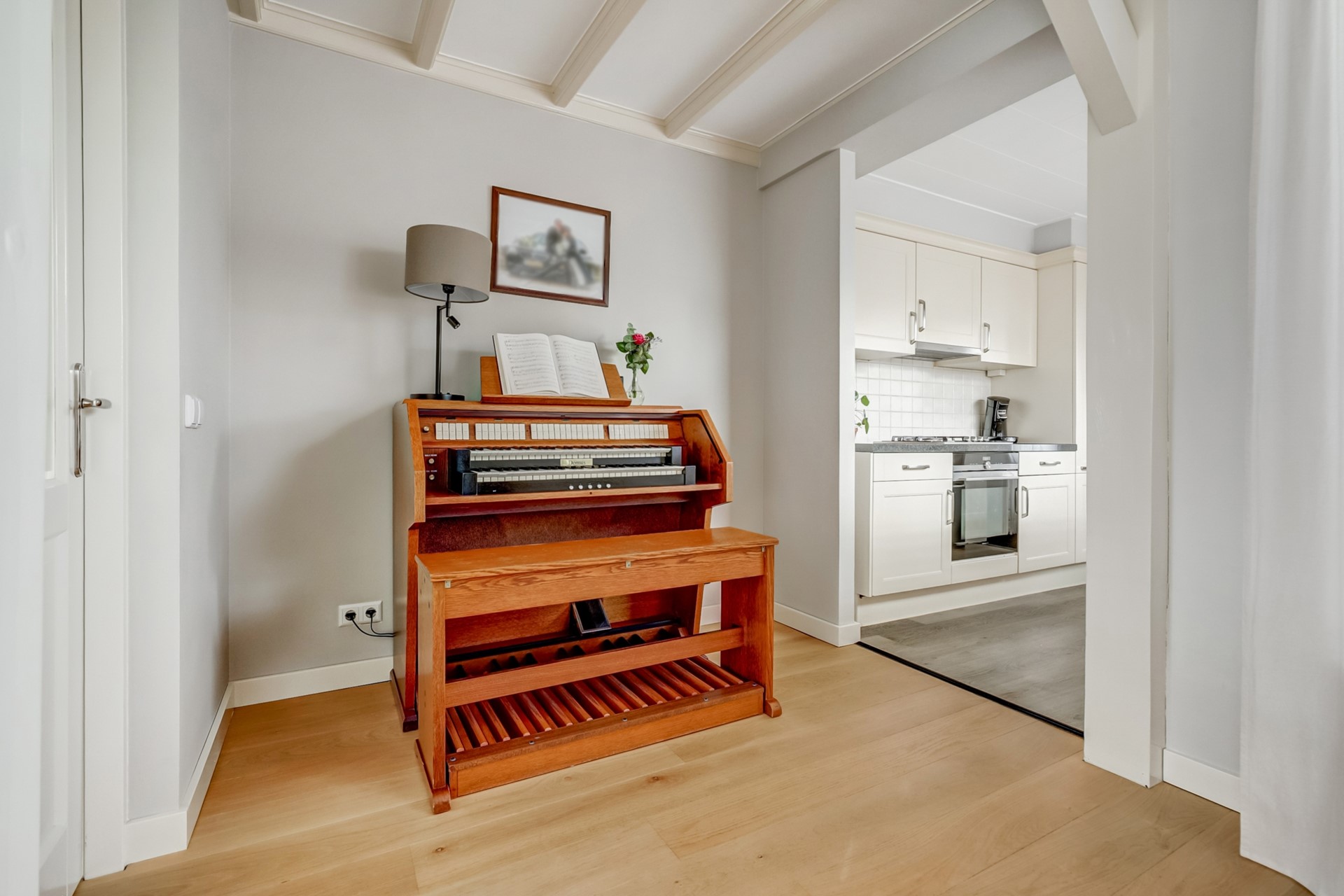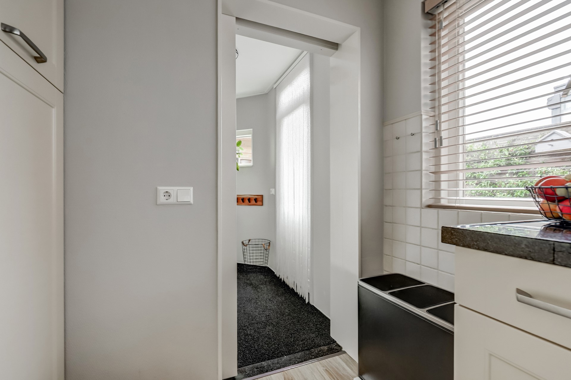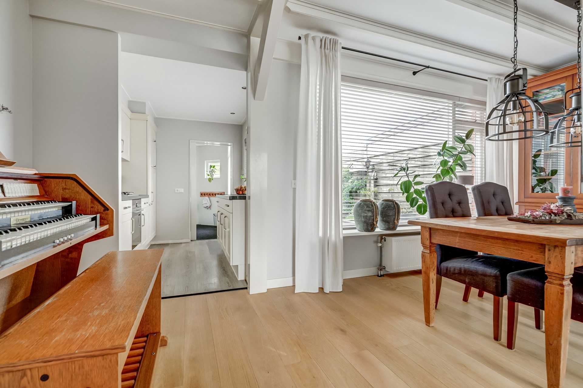 Entreehal v.v. keder- /traplast met moderne groepenkast (8 groepen 2 aardlekschakelaars), woonkamer (ca. 29m²), uitbouw met keuken en bijkeuken.