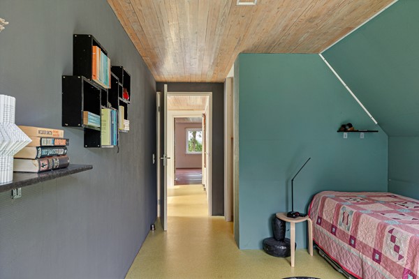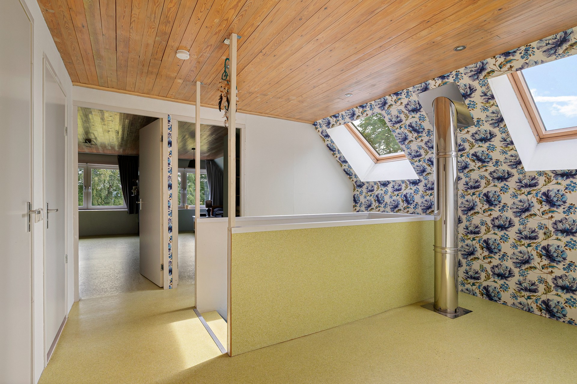 Vanuit de leefkeuken bereik je met een vaste trap de verdieping de royale overloop, voorzien van twee dakramen voor extra lichtinval.