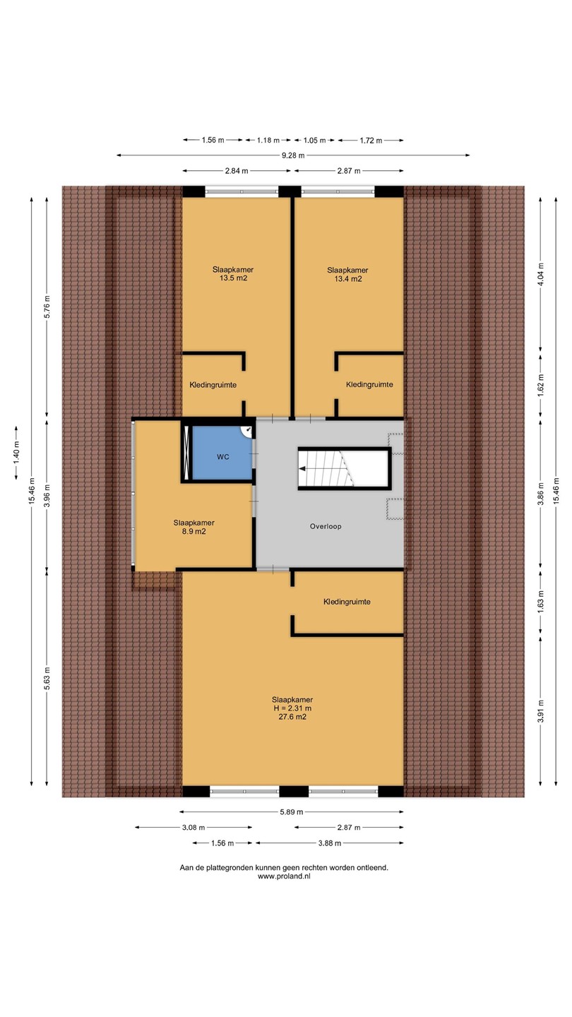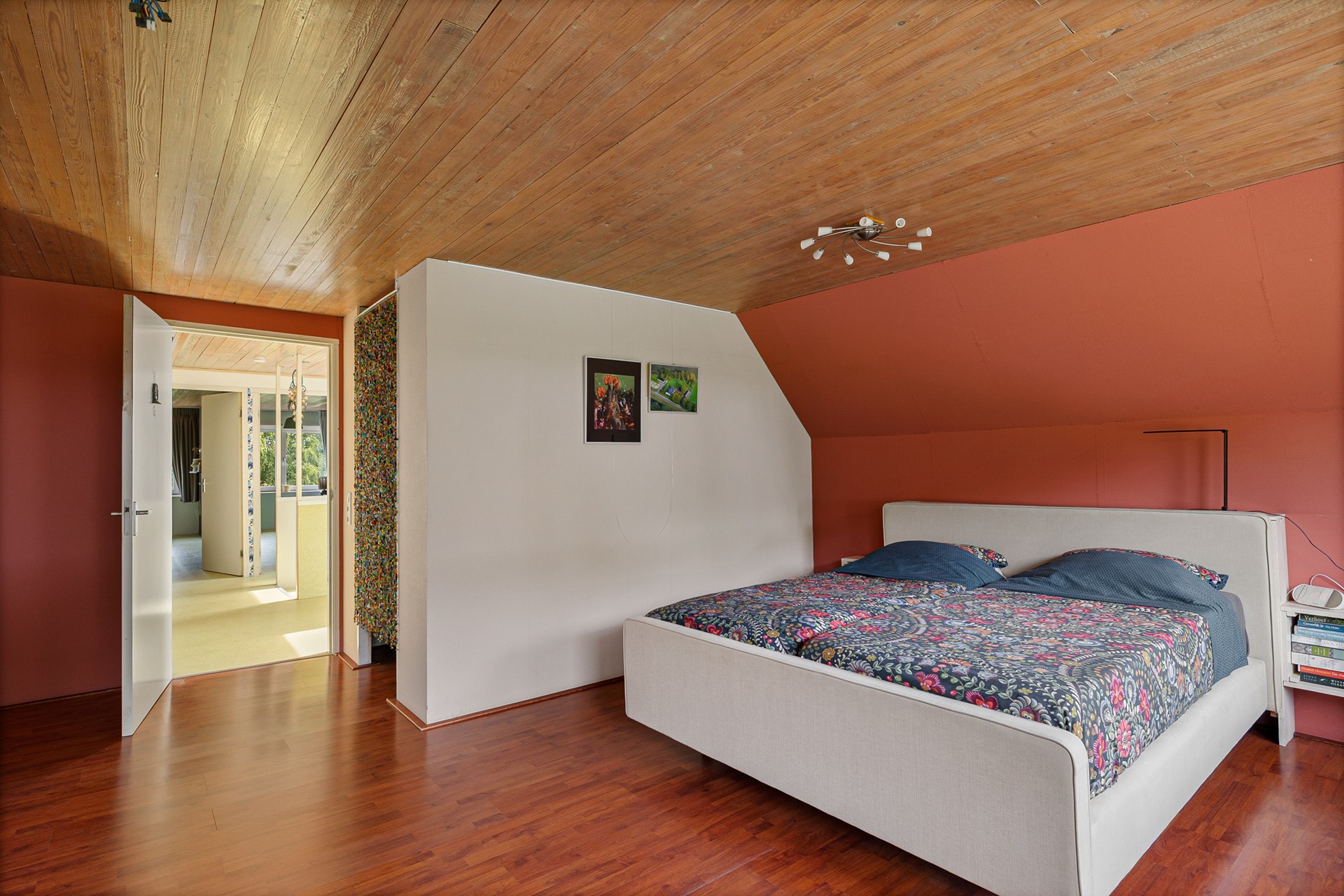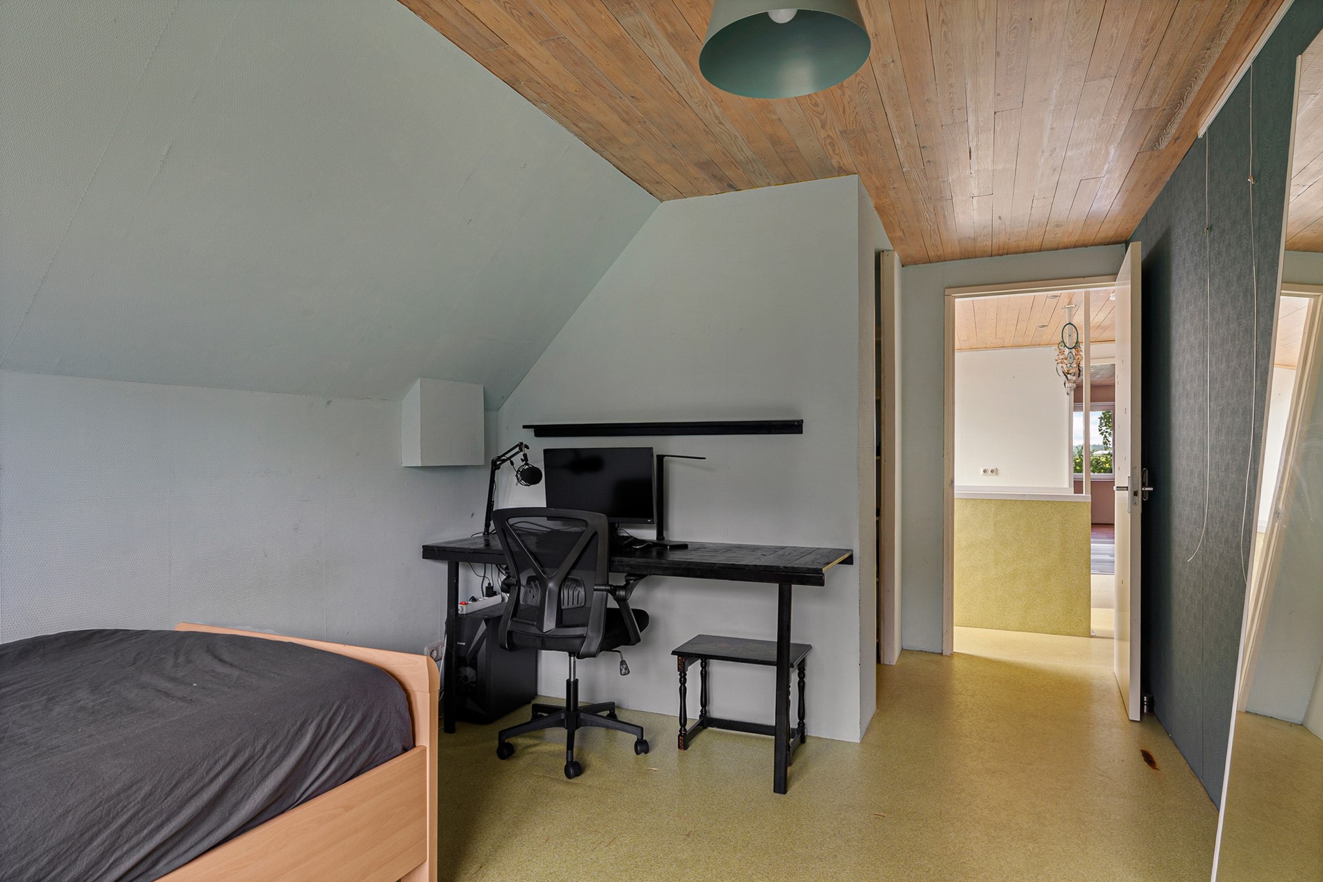 Op de verdieping vind je aan de linkerzijde een royale ouderslaapkamer met een inloop kledingkast. Aan de rechterzijde vind je twee gelijke slaapkamers, eveneens met een inloop kledingkast. Er is daarnaast bergruimte achter de knieschotten aanwezig.