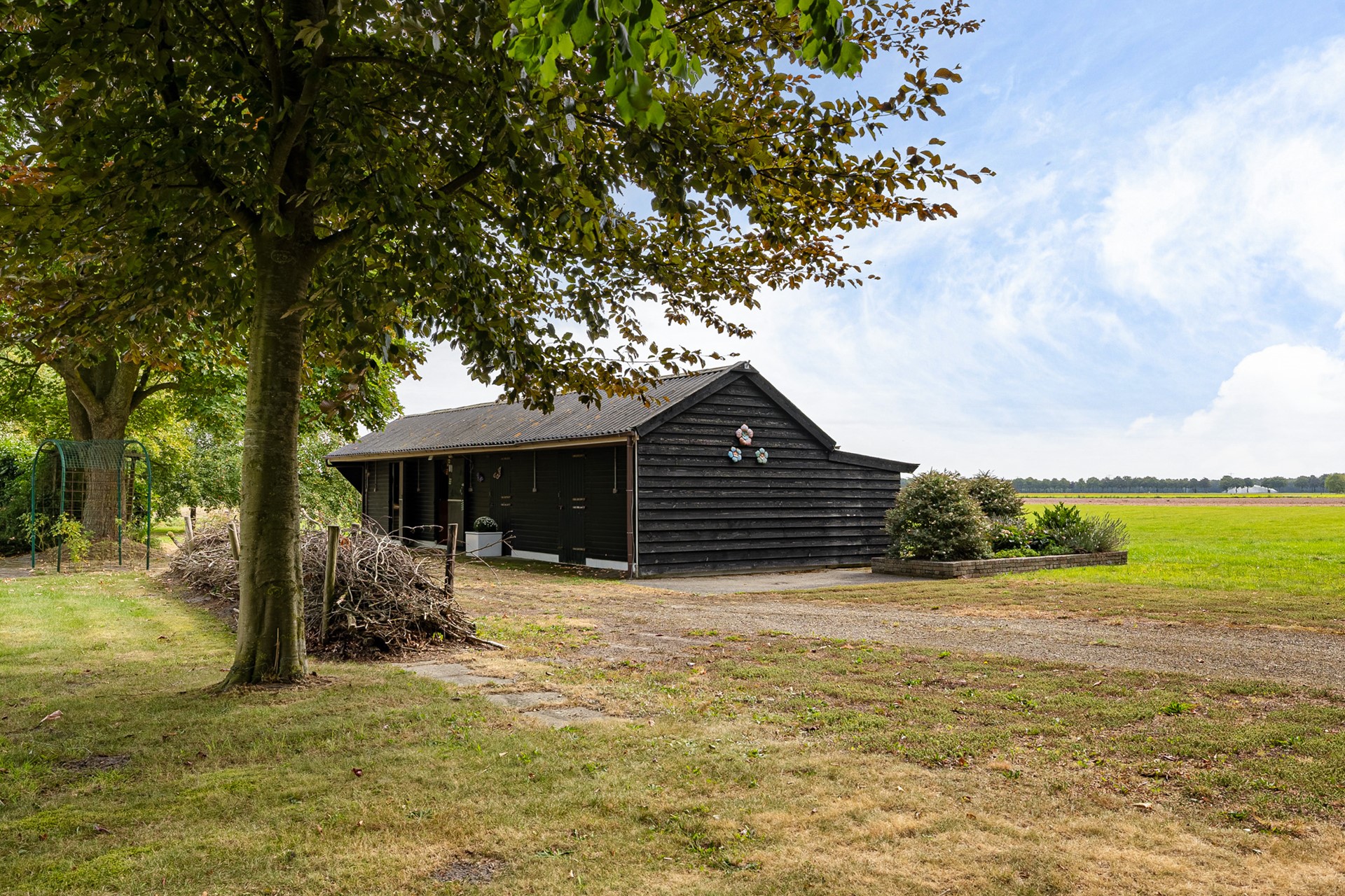Bij de oprit van de woning staan geschakelde garageboxen en er ligt nog een betonfundering van oudere schuren die hier hebben gestaan. Je kunt ervoor kiezen om hier een royale kapschuur met garage te bouwen of een mantelzorgwoning voor (schoon)ouders of kinderen te plaatsen.