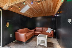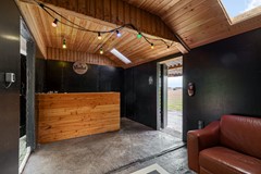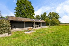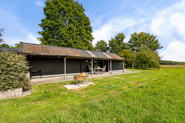 Genoeg over binnen. Buiten is minstens zo interessant met 145 m2 aan bijgebouwen. Hier vind je de voormalige (paarden)stallen. Een gedeelte hiervan is nu geïsoleerd en in gebruik als chillruimte met bar en een overkapping voor gezellige (BBQ)avonden of kletsen bij de vuurkorf.