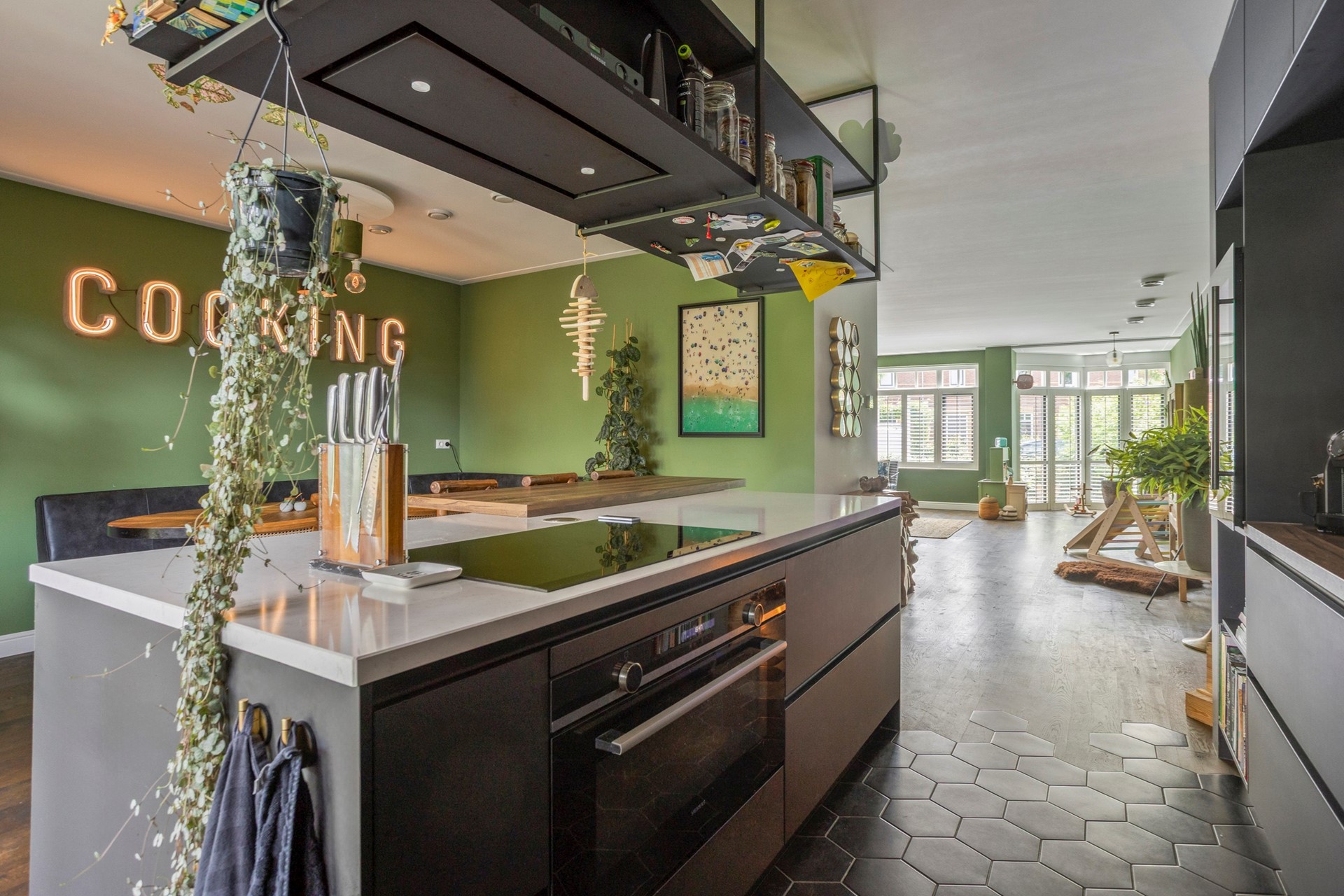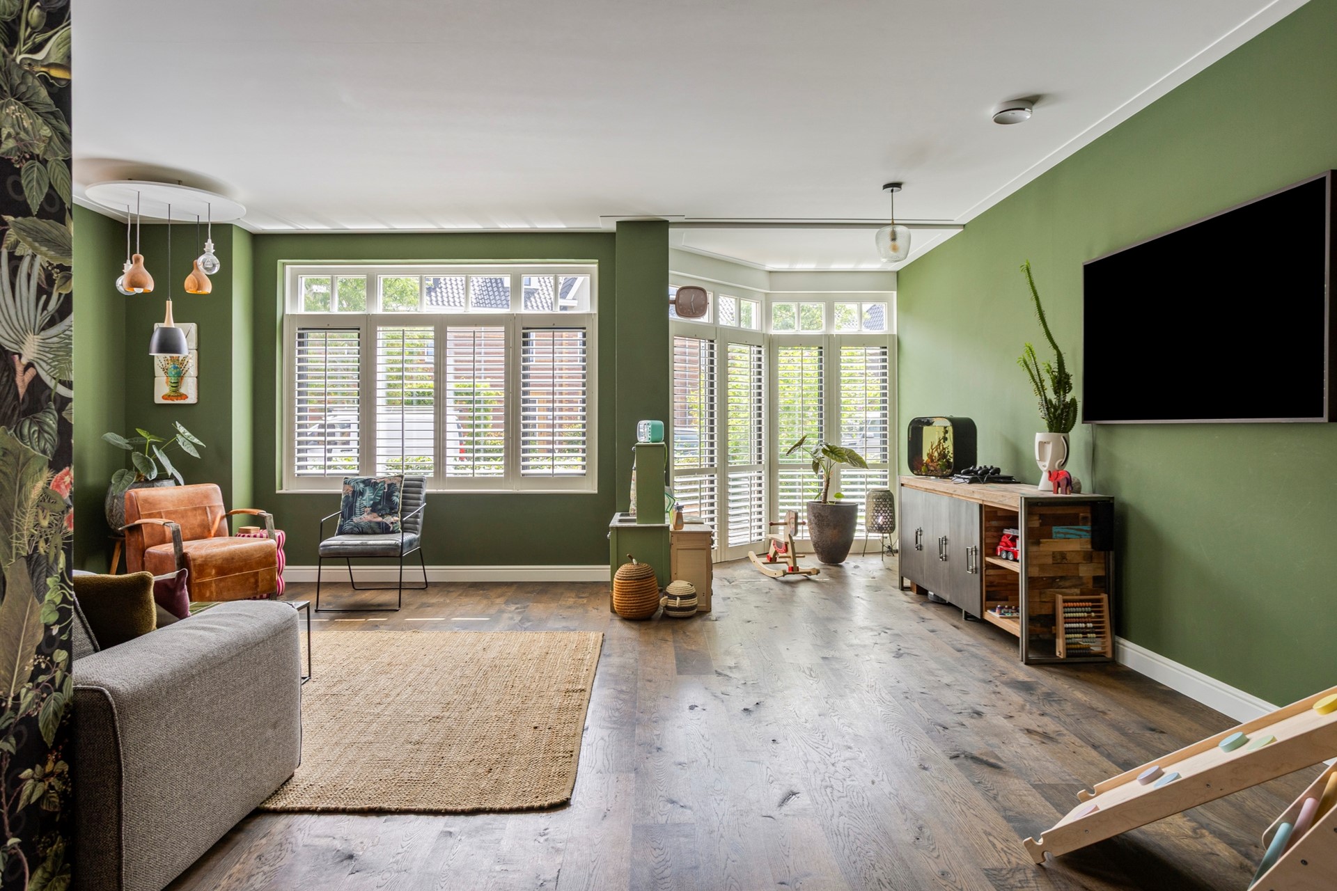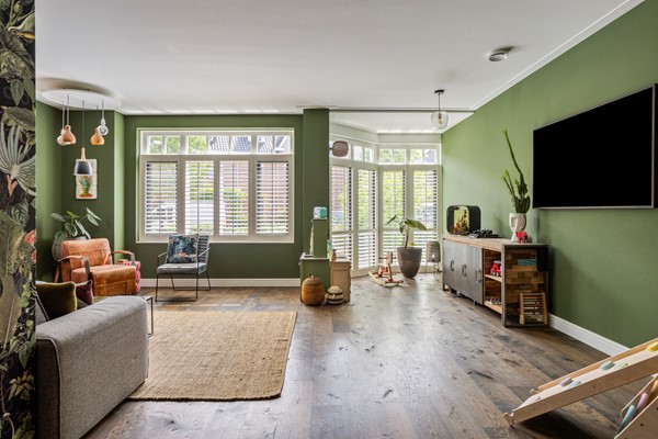 De gehele begane grond heeft vloerverwarming en de woonkamer is voorzien van fraaie houten vloerdelen.