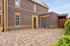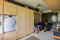 Ook zijn er aan de achterzijde openslaande deuren naar de tuin en een deur om van binnenuit naar de garage te gaan. De garage heeft aan de voorzijde openslaande deuren en aan de achterzijde is ook een deur. Verder is er een handige kastenwand met daarin verwerkt de aansluiting voor de wasmachine en droger.