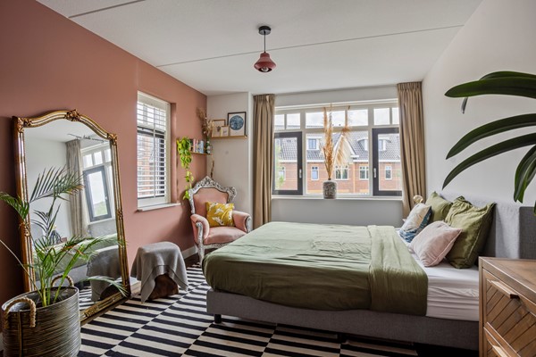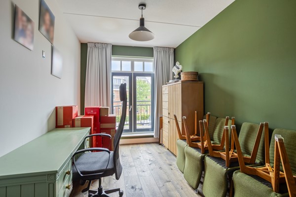 Overloop met aparte modern toilet. Verder zijn er op deze verdieping drie goed formaat (slaap)kamers. Eén van de slaapkamers aan de voorzijde heeft nog een gezellig balkon. De luxe, moderne badkamer is fraai afgewerkt en heeft een ruime inloopdouche, een vrijstaand bad en een wastafel met meubel. Deze gehele verdieping is voorzien van houten vloerdelen en vloerverwarming.