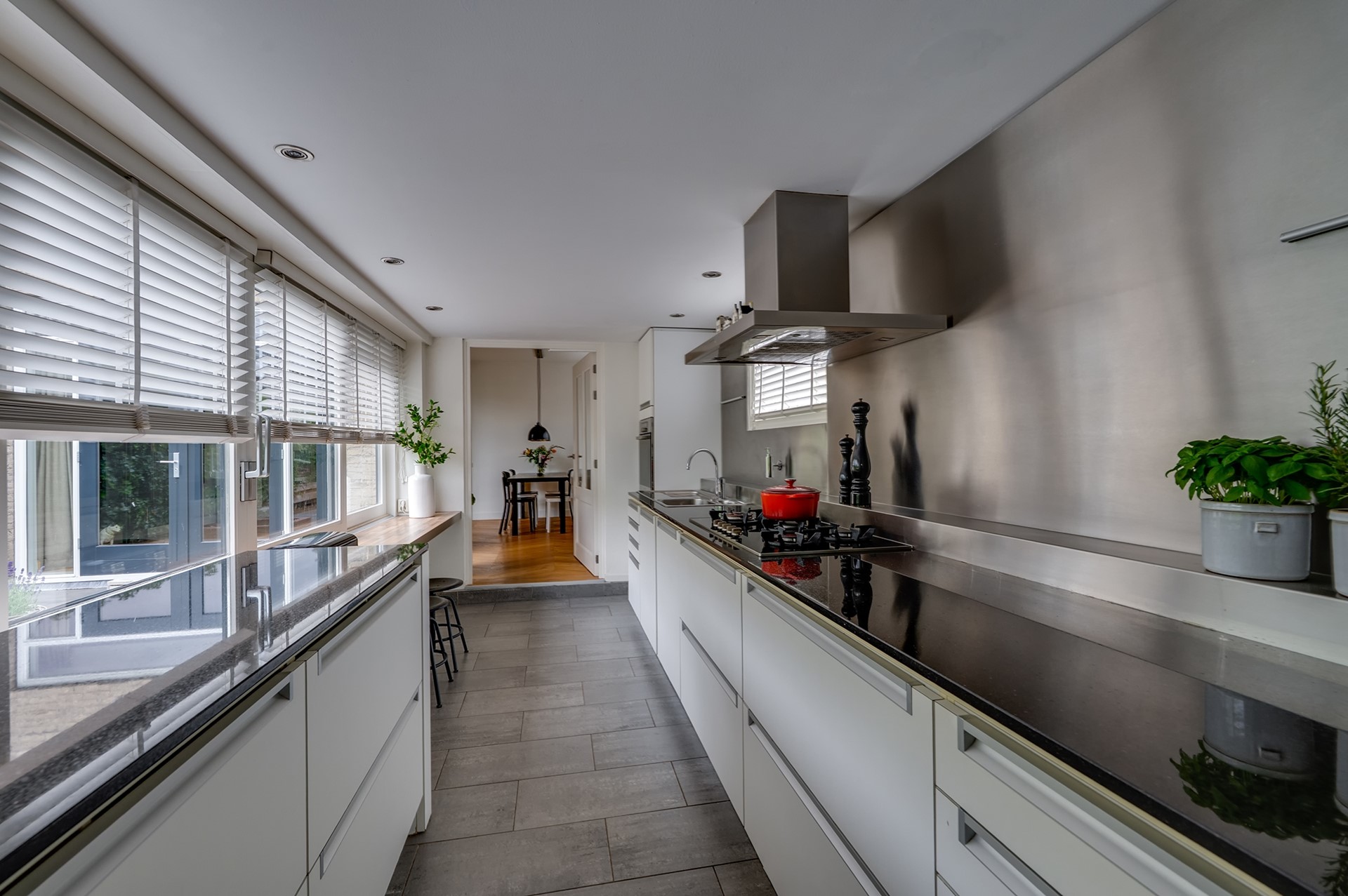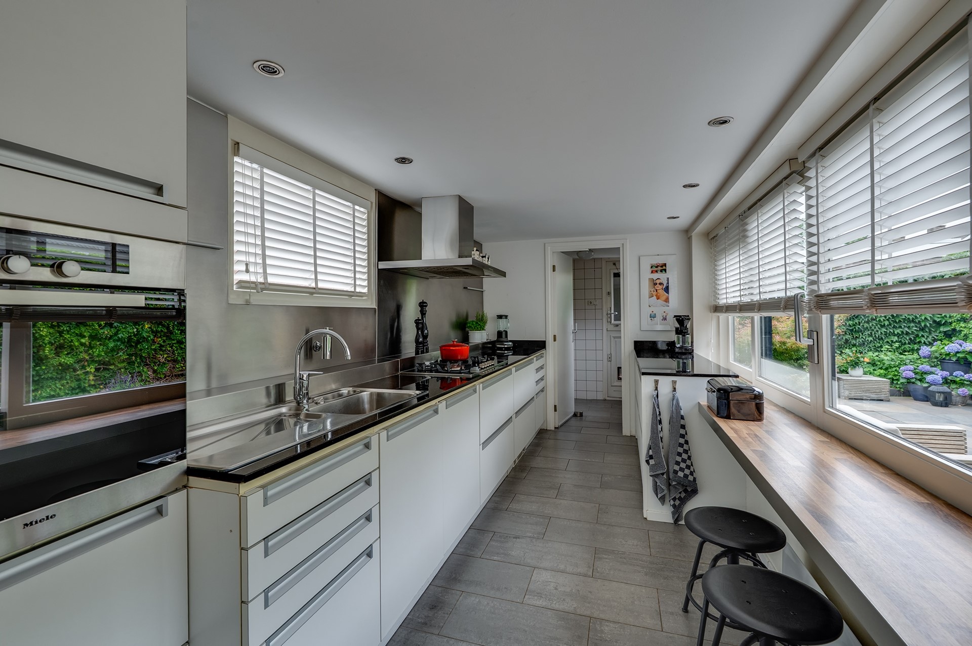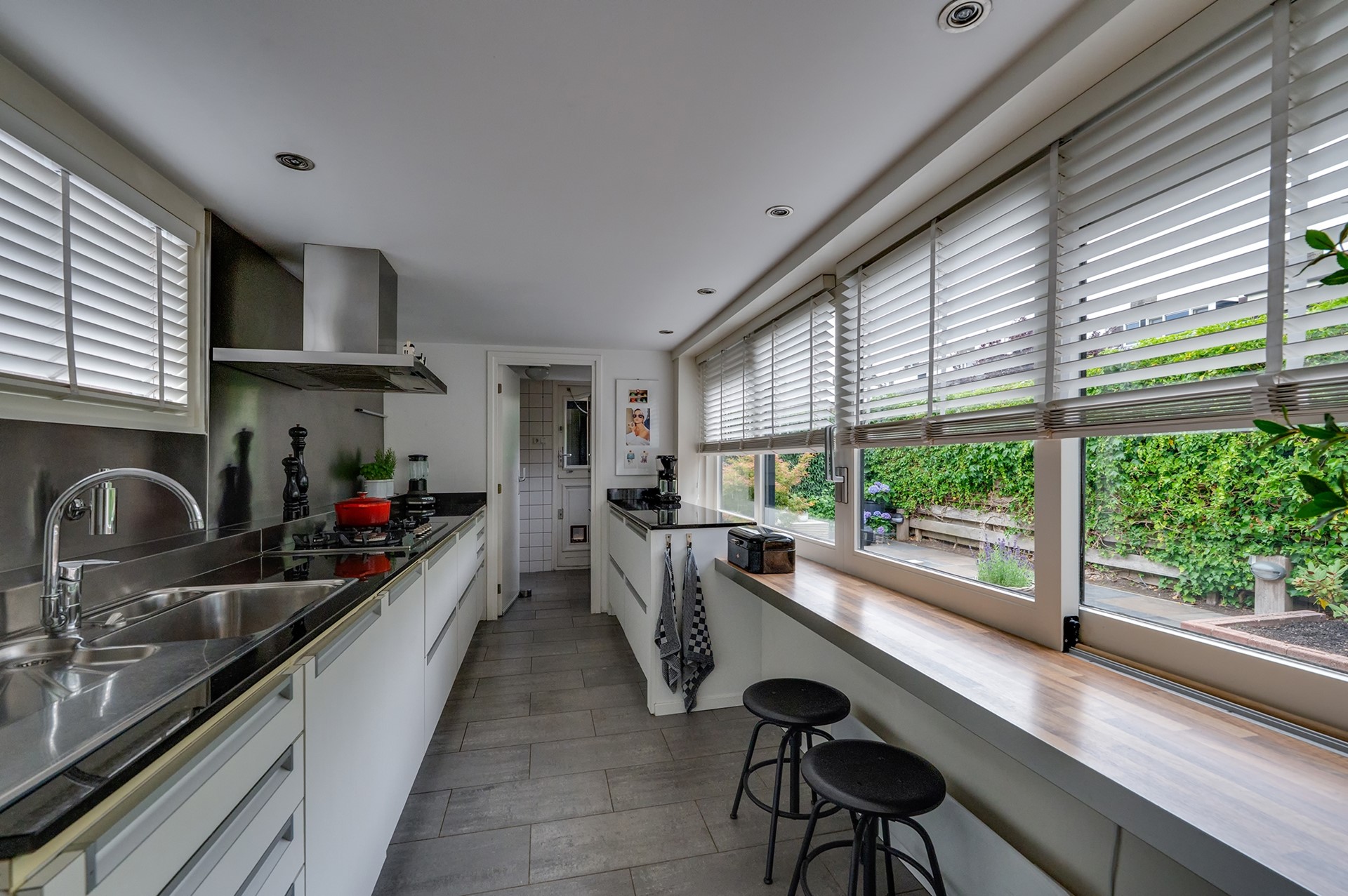 3. Moderne keuken met veel werkruimte en uitzicht op de tuin