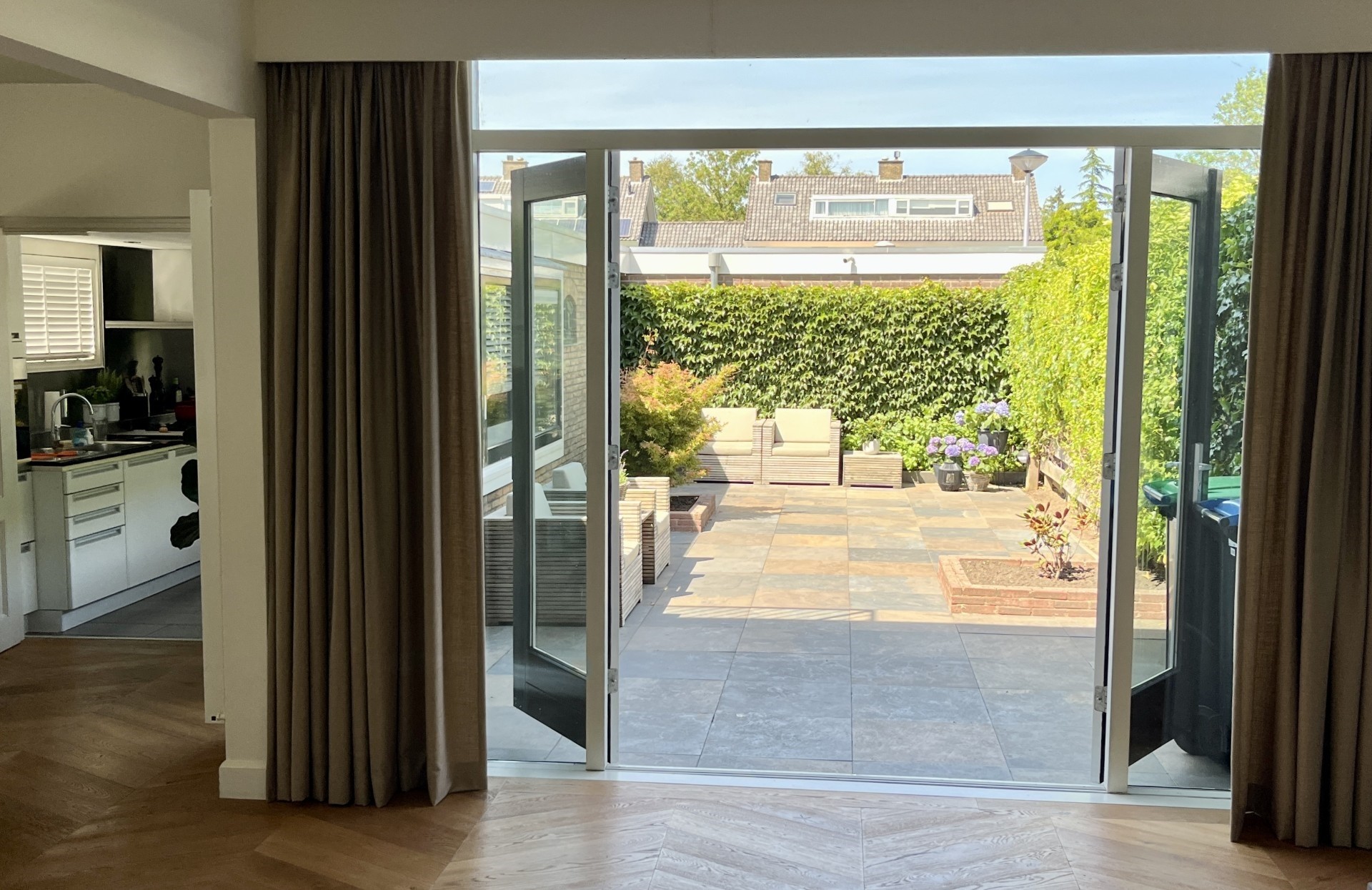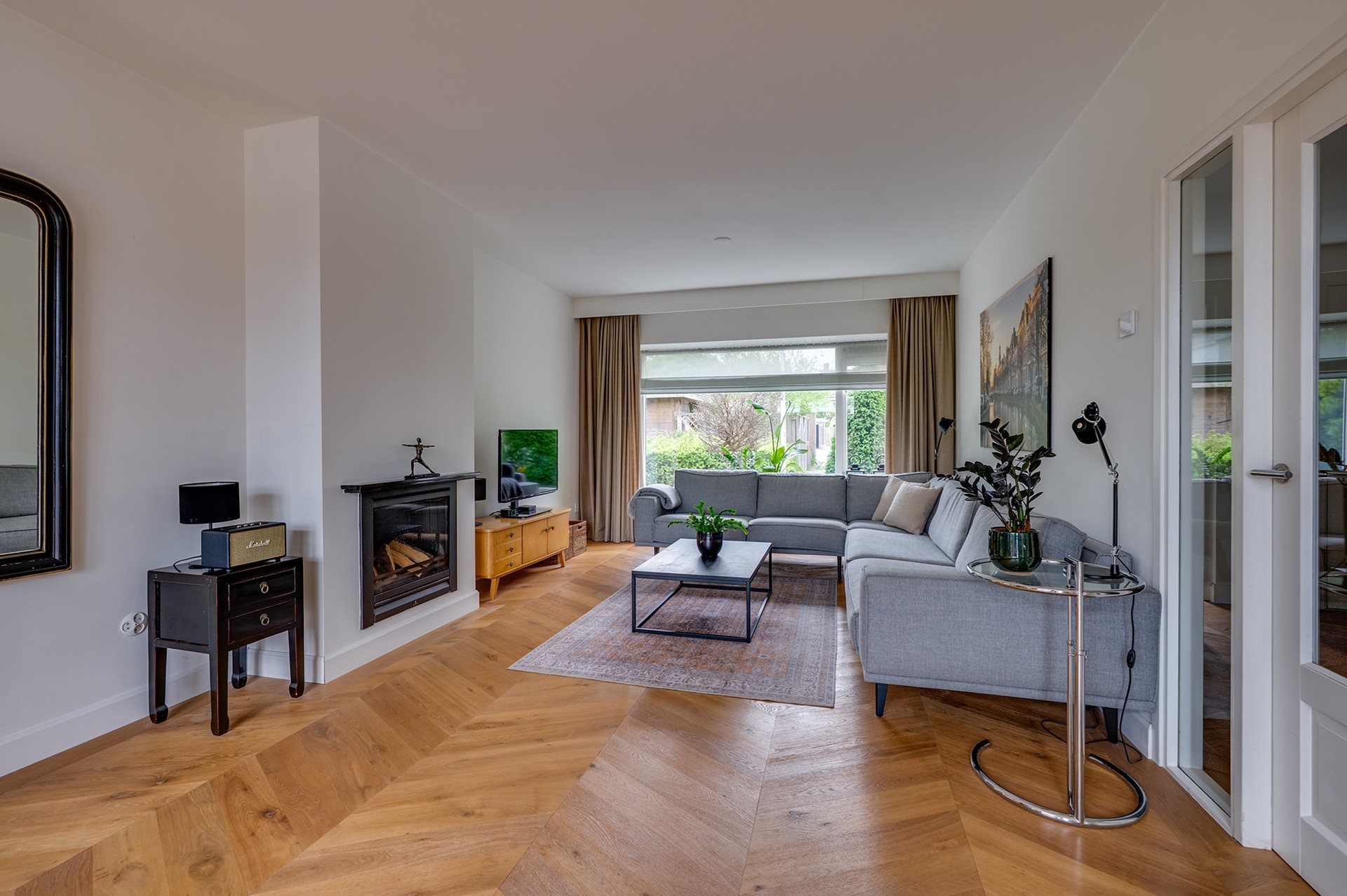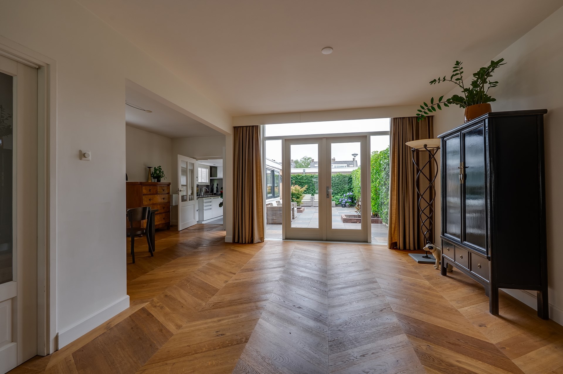 1. Lichte en royale woonkamer met uitbouw en openslaande deuren