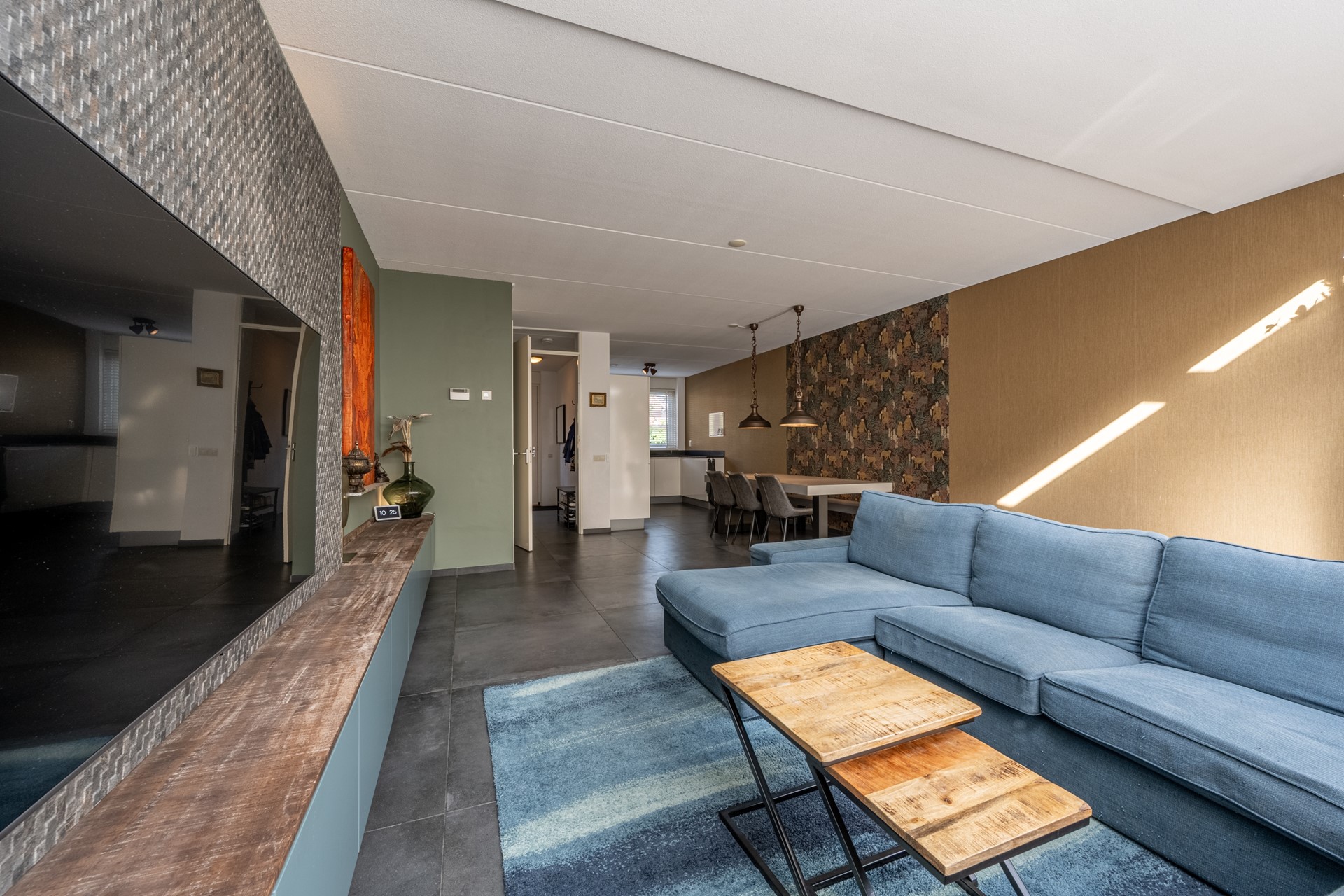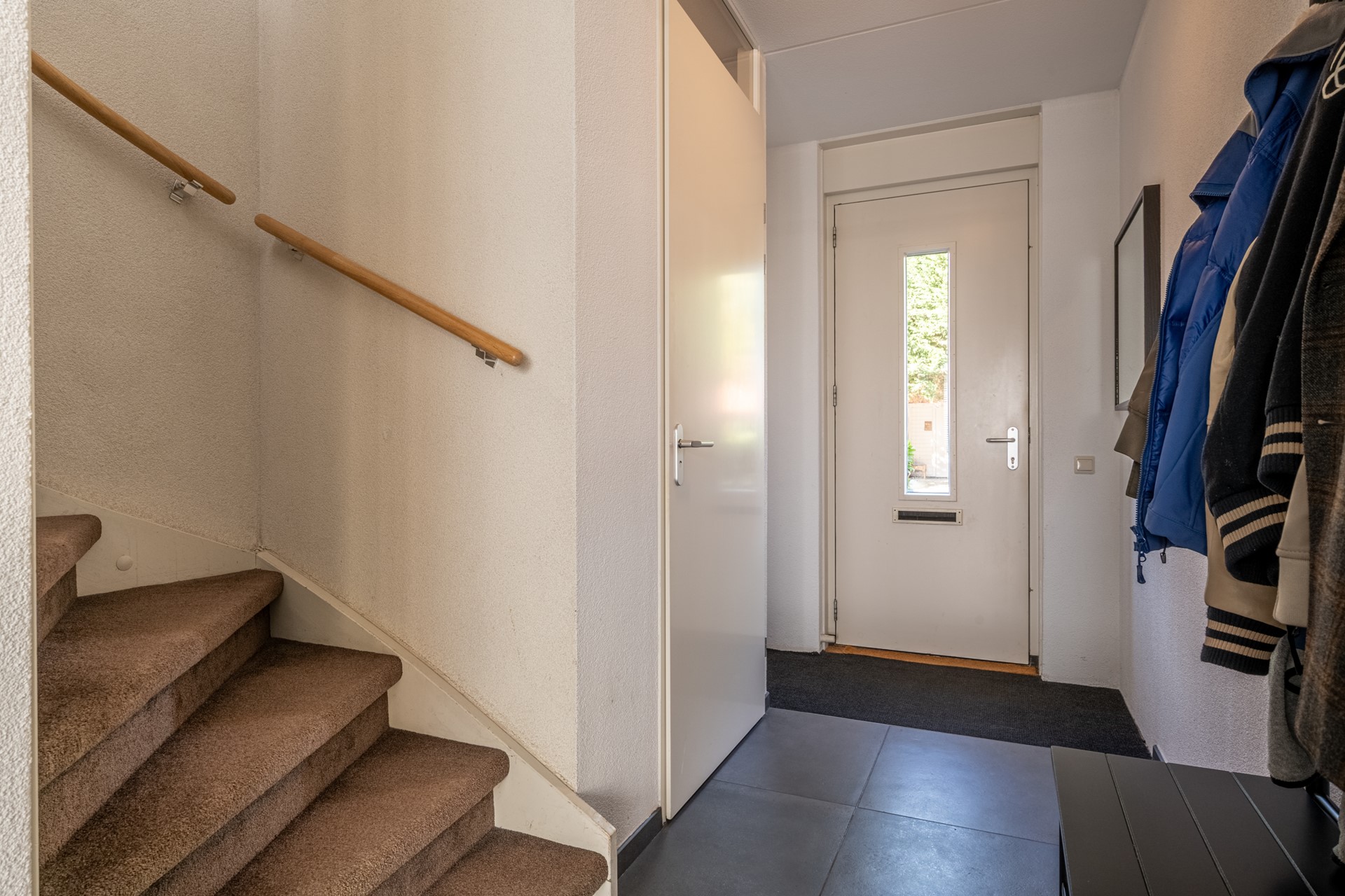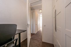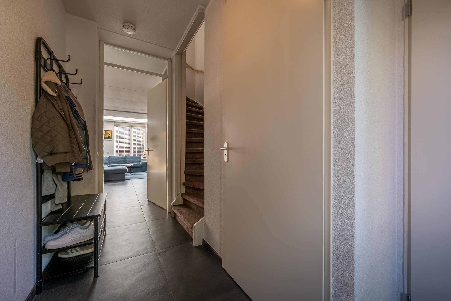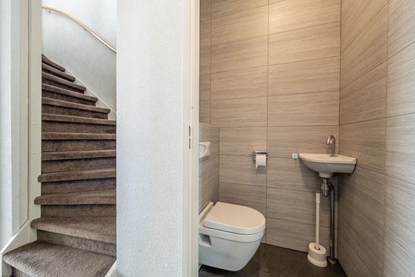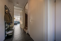 Bij binnenkomst in de woning betreed je de ruime hal, die toegang biedt tot het moderne toilet, de meterkast en de lichte, uitgebouwde woonkamer. De hal is verzorgd afgewerkt en geeft direct een voorproefje van de moderne en sfeervolle uitstraling die je in de rest van de woning terugvindt.