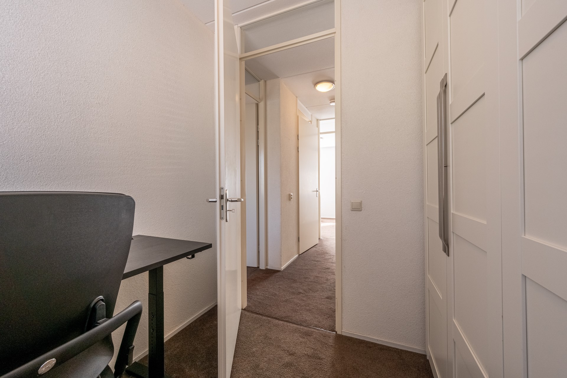 De overloop biedt toegang tot drie slaapkamers en de luxe, in 2024 vernieuwde badkamer.