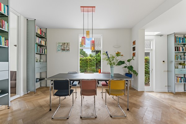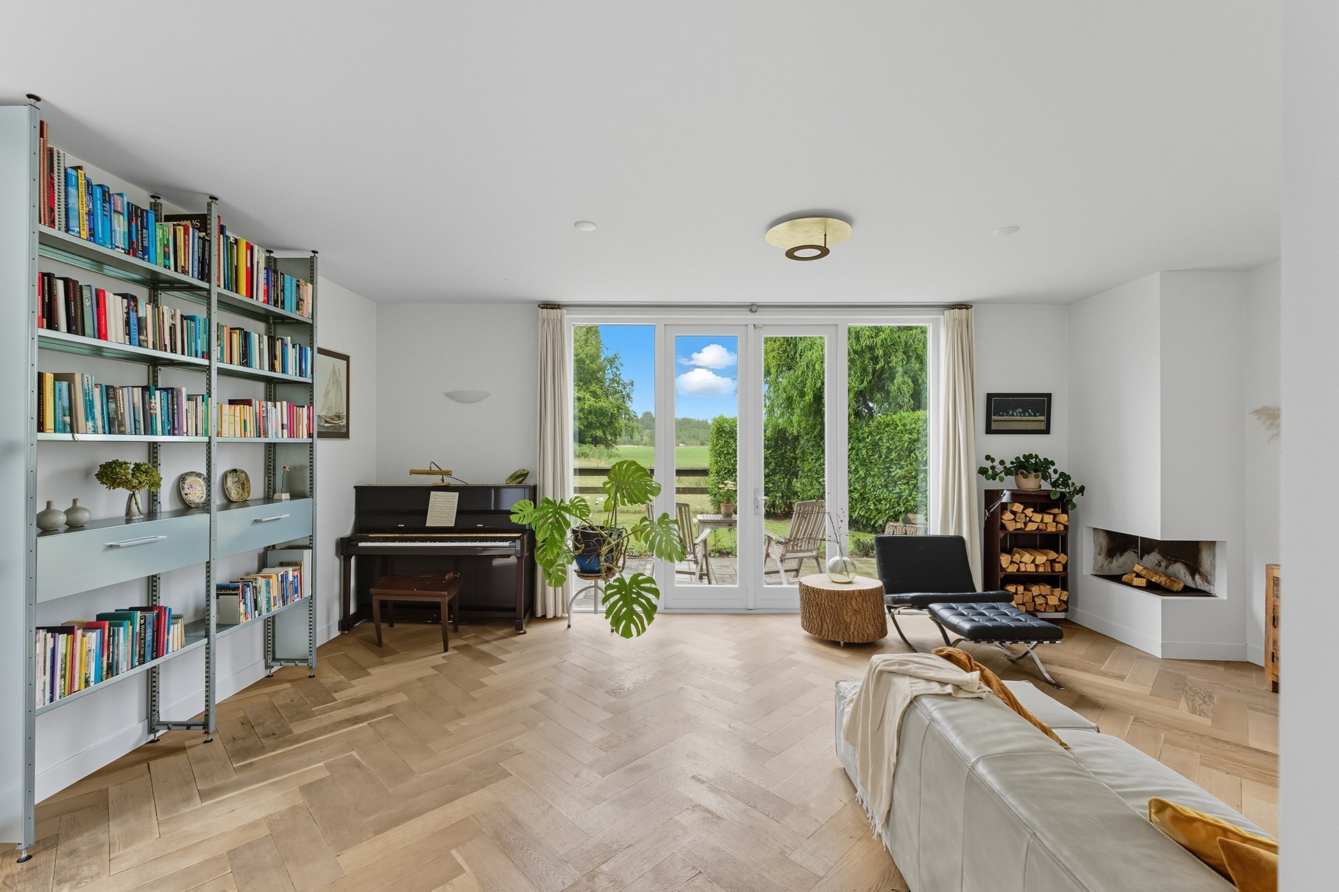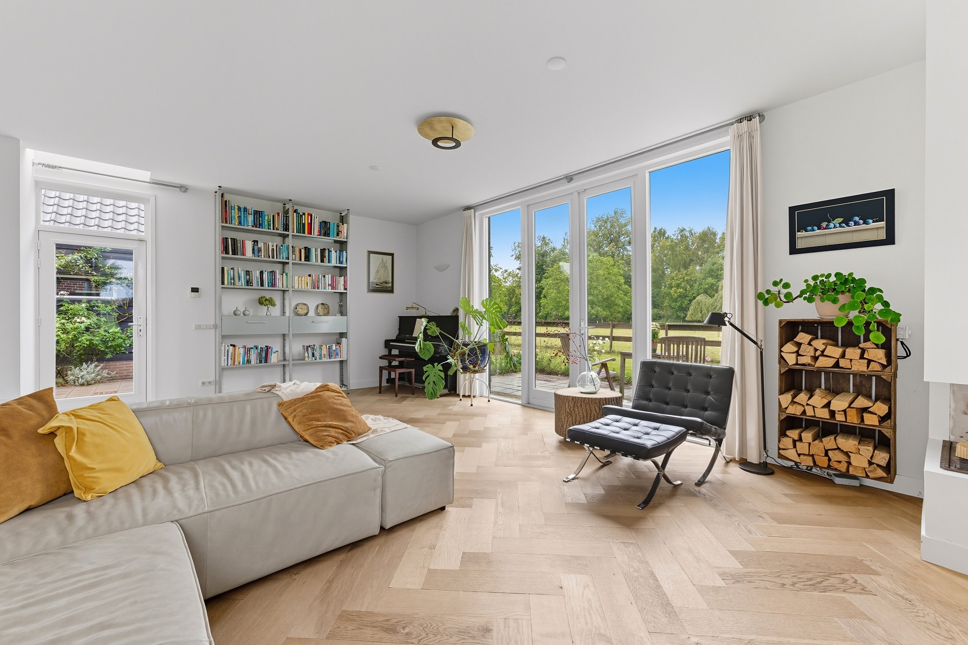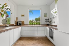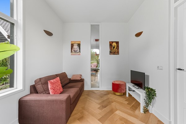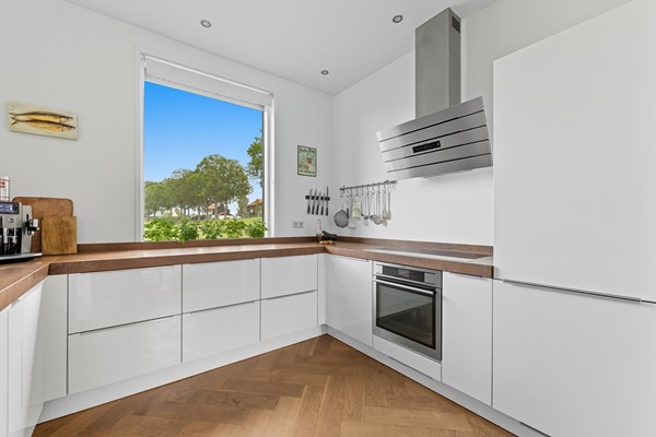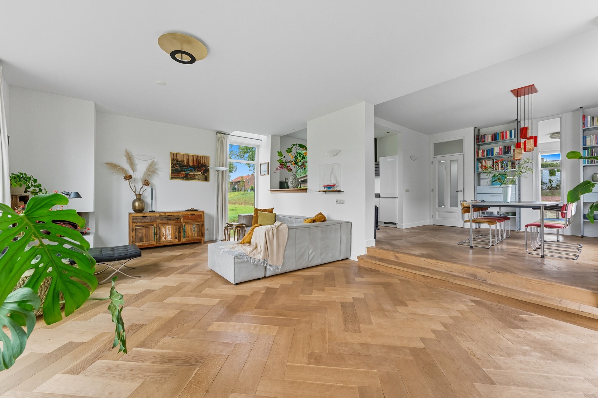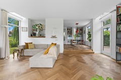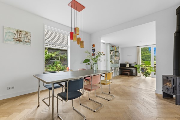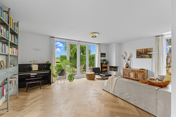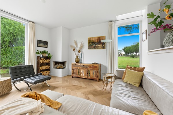 In de living word je direct verrast door ruimtelijkheid en de charmante afwerking. In de uitbouw is er een royale woonkamer gecreëerd, licht en sfeervol, met een fijne connectie naar de tuin. Er is een charmante open haard én houtkachel aanwezig. De woonkamer heeft een fijne connectie met het eetgedeelte en de leefkeuken. De keuken heeft een strakke en luxe afwerking en is volledig voorzien van inbouwapparatuur.