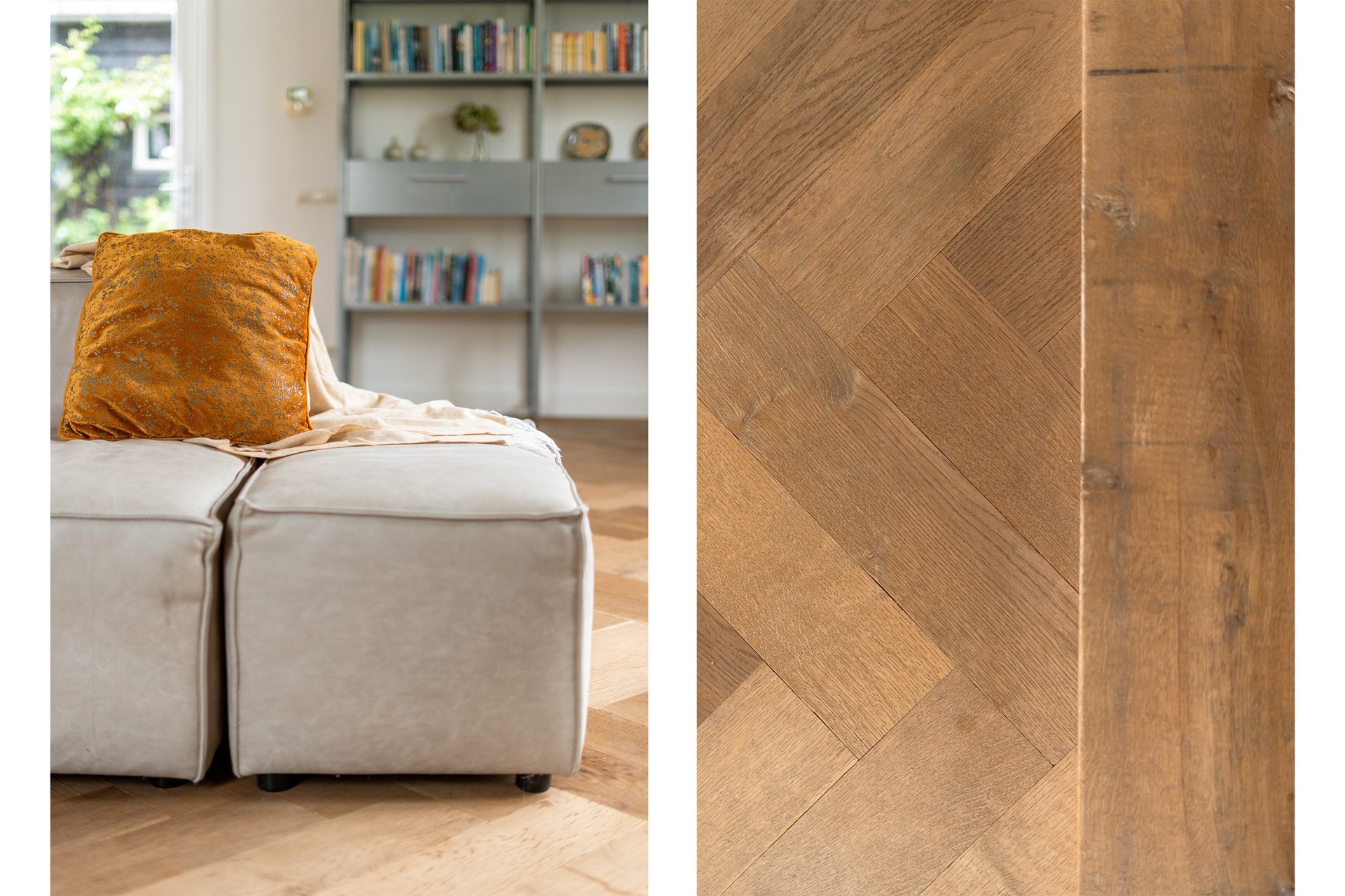 De gehele begane grond is voorzien van een strakke wandafwerking en een mooie houten visgraatvloer met vloerverwarming.