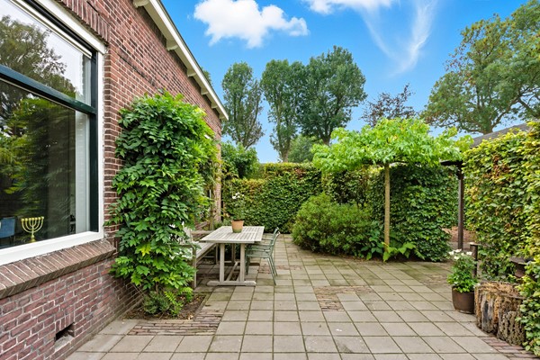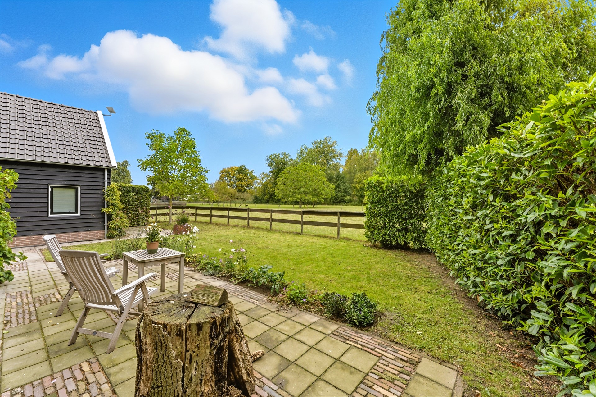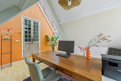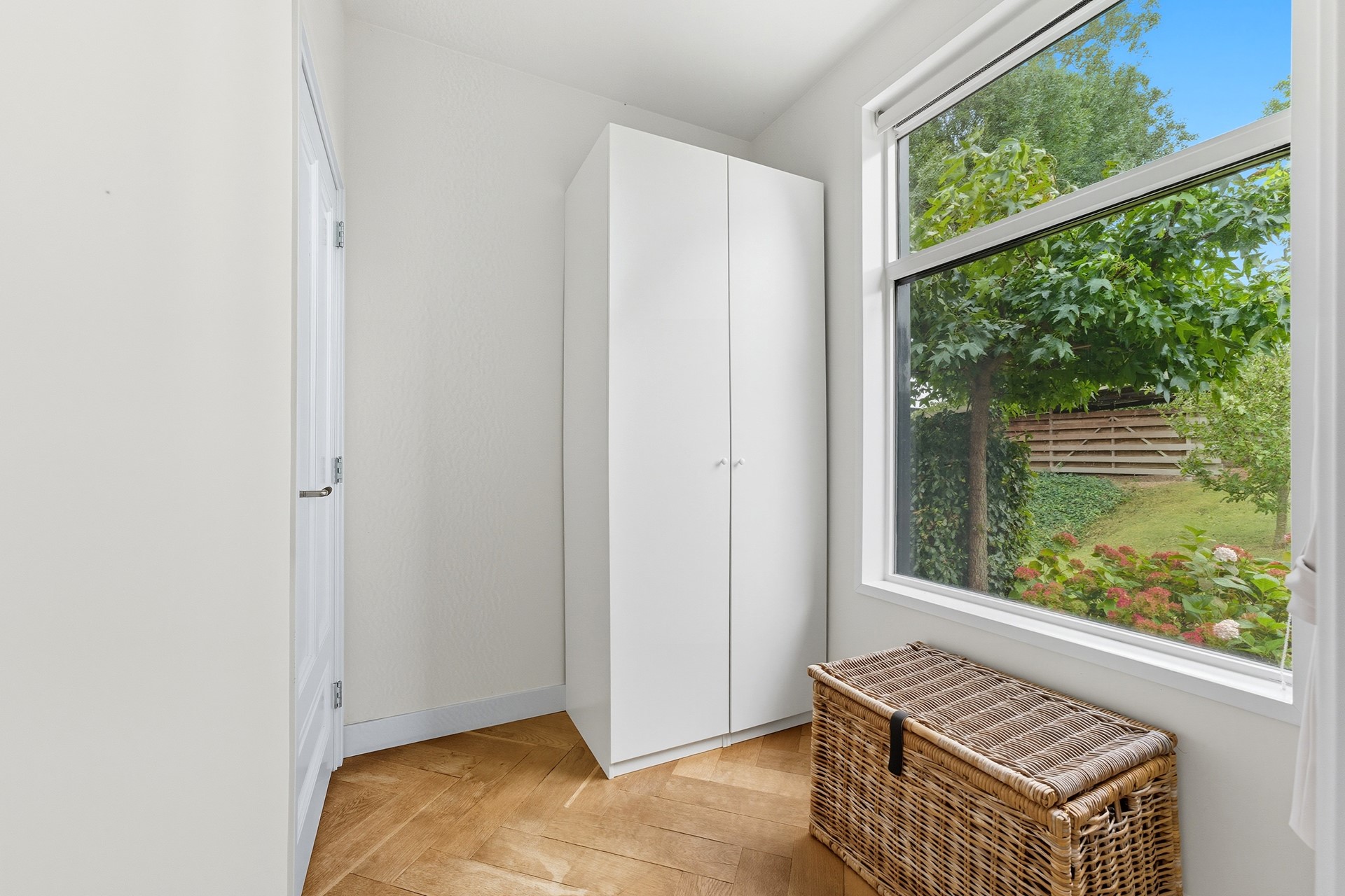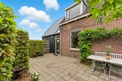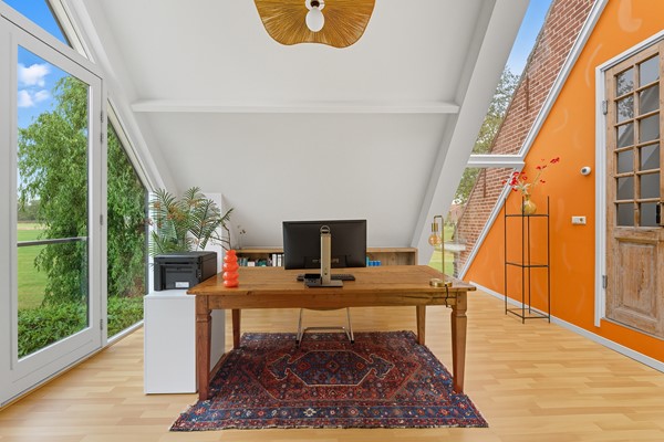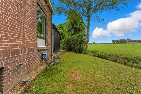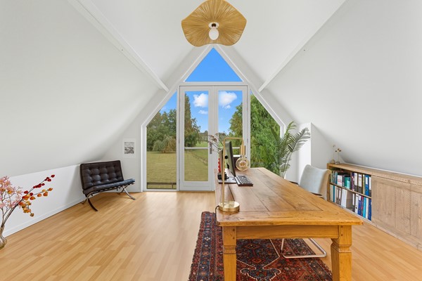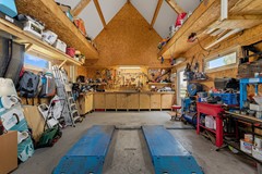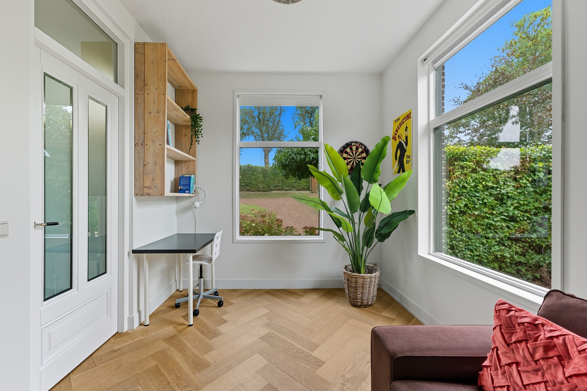 In de tuin vind je een groot vrijstaand bijgebouw dat volledig is geïsoleerd is. Dit bijgebouw is opgedeeld in een grote garage en een apart buitenverblijf met keuken, badkamer, woonkamer en slaapkamer. Deze ruimte biedt ongekende mogelijkheden: een gastenverblijf, atelier, kantoor aan huis of een mantelzorgwoning: het kan hier allemaal.