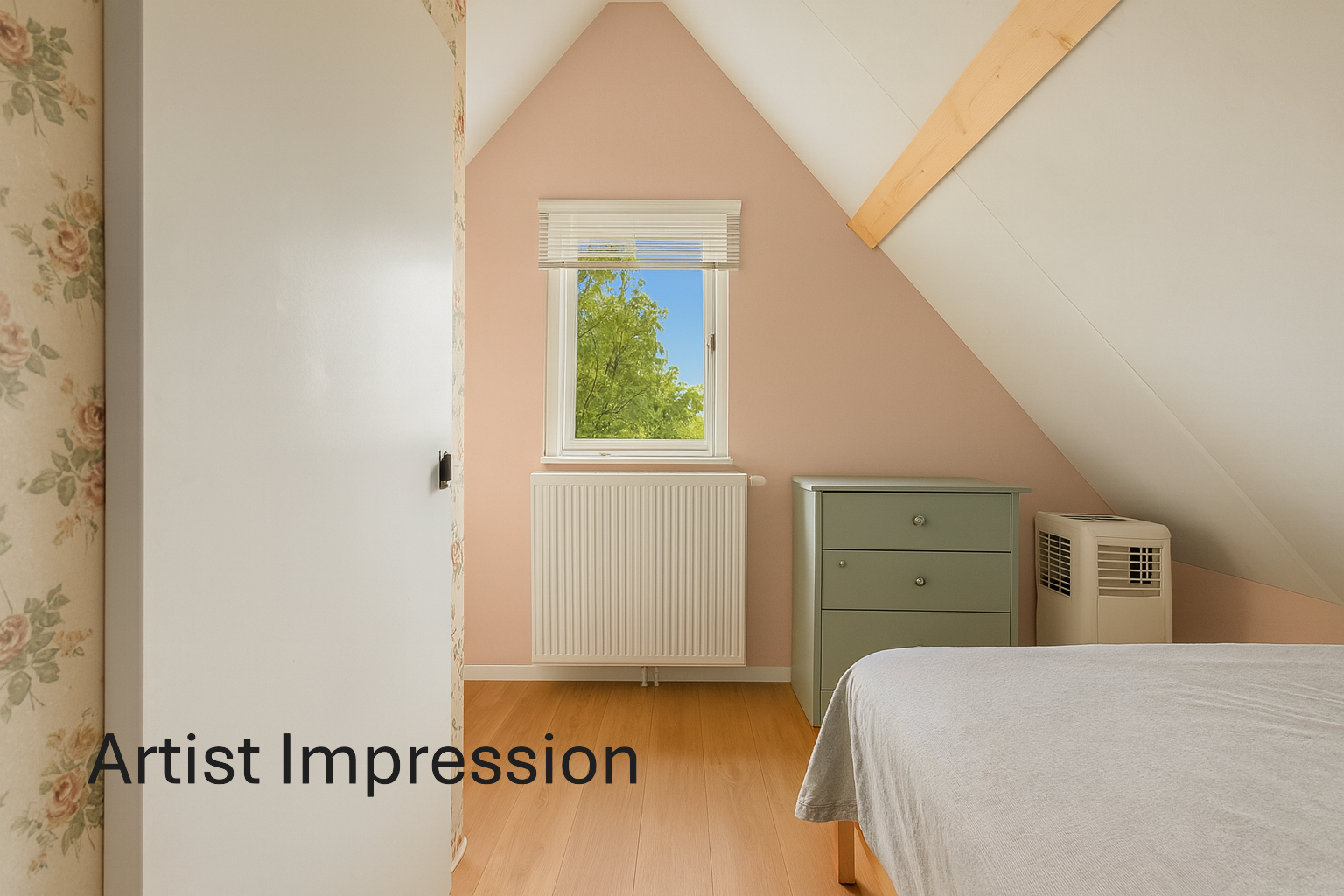 Je komt op deze verdieping op de overloop. Hier zijn nóg eens twee kamers te vinden, ideaal als logeer- of werkkamers.
