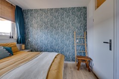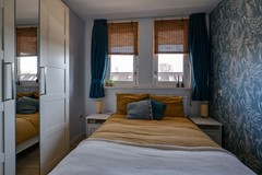 De ruime slaapkamer is gelegen aan de galerijzijde van de woning. De badkamer (vervangen in 2019) is via de slaapkamer bereikbaar en is grotendeels betegeld en beschikt over een wasmachine aansluiting, wastafel met meubel en inloopdouche.