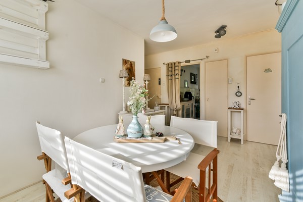 Aangrenzend vind je de separate eetkamer met toegang tot het balkon, waar je in de ochtend kunt genieten van de zon. Deze eetkamer is ideaal om bijvoorbeeld samen te tafelen of te gebruiken als werk- of hobbyruimte.