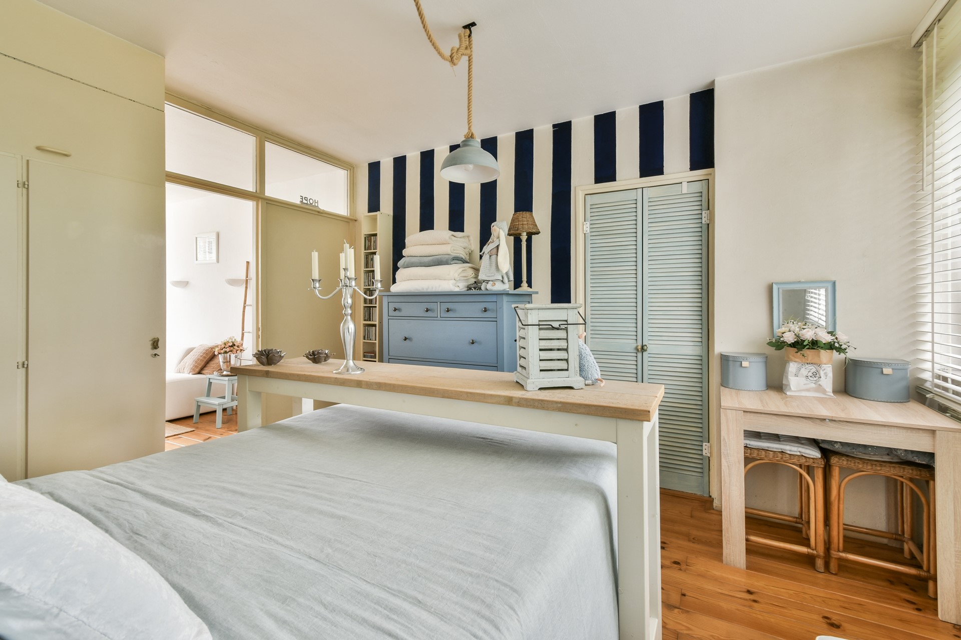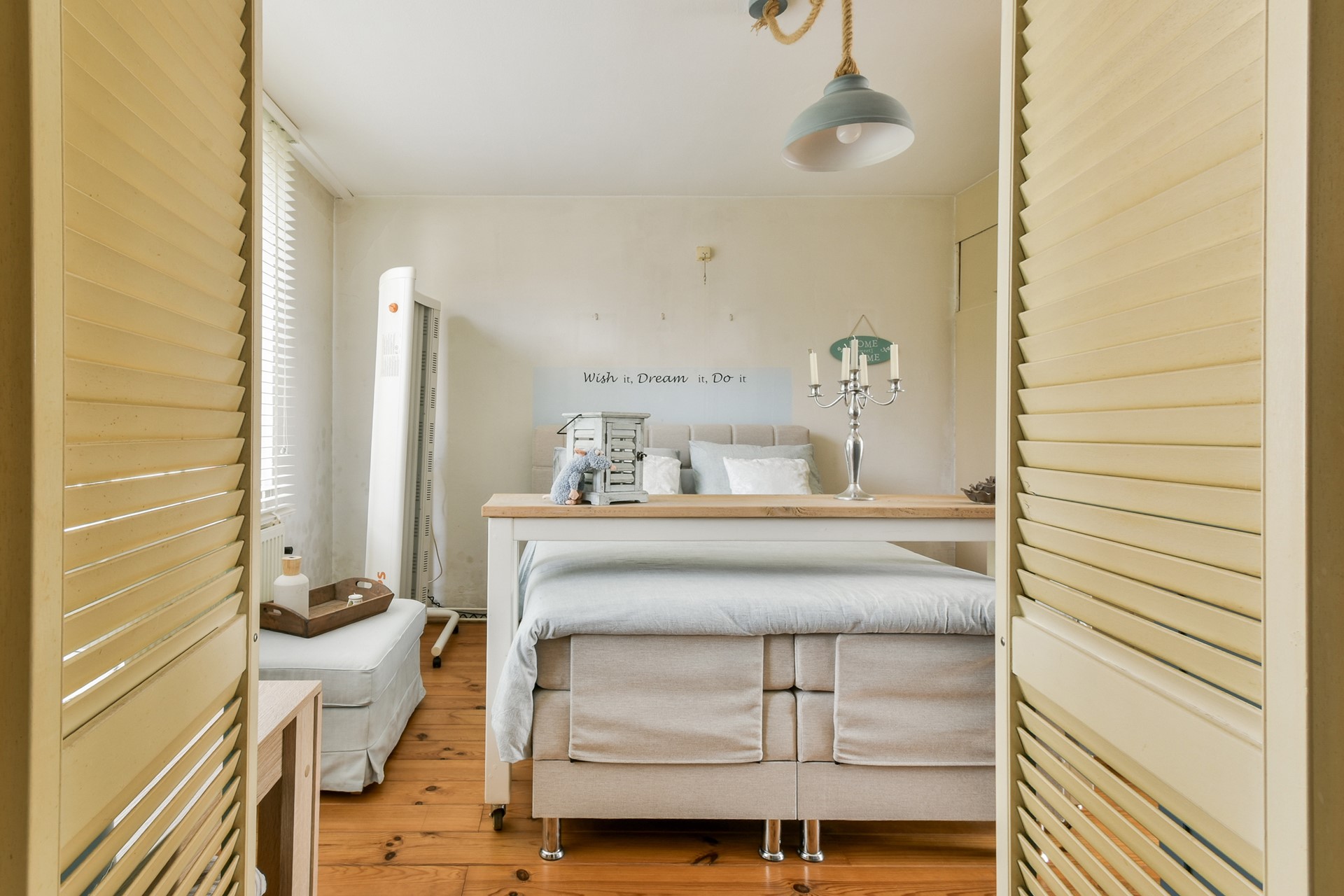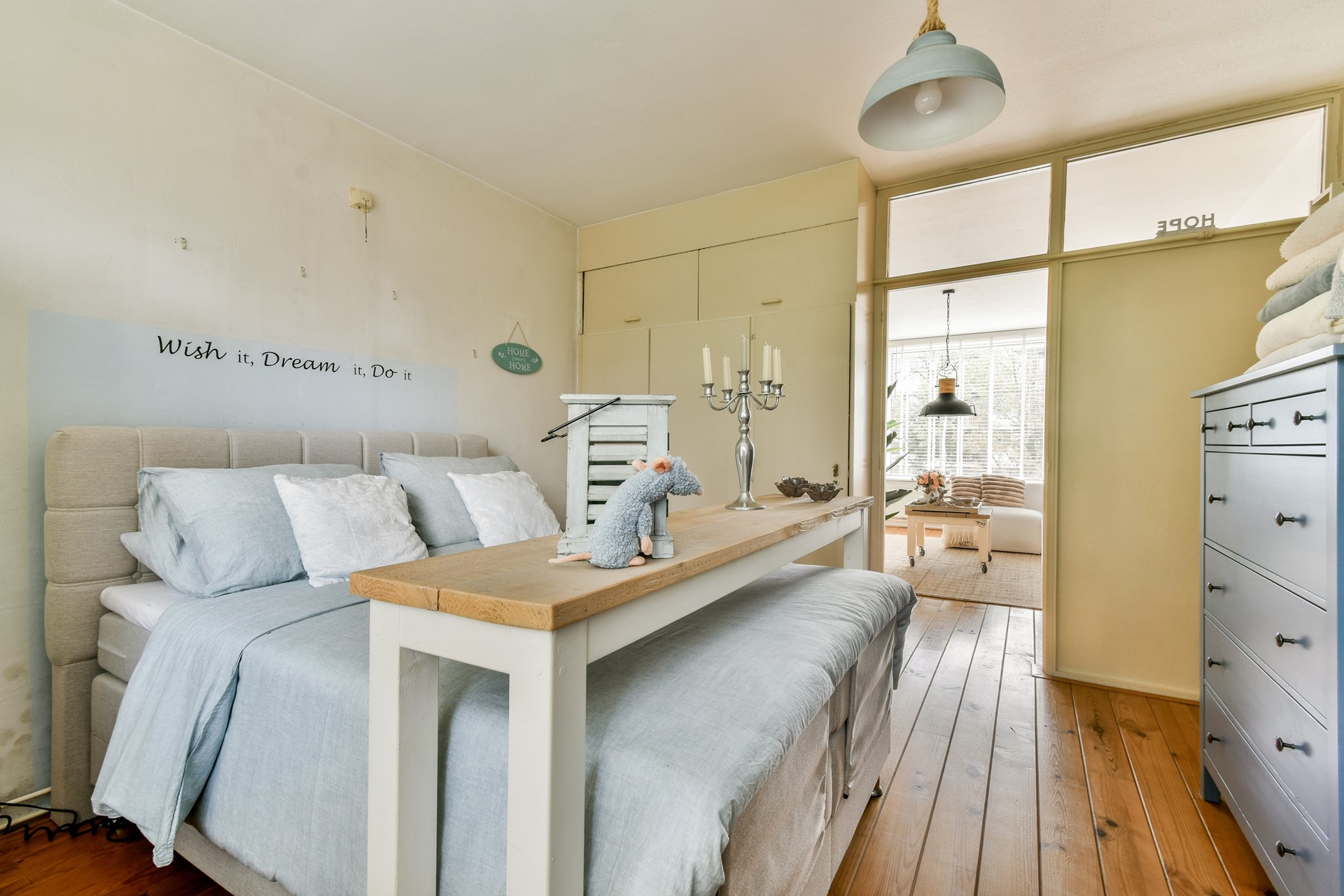 Het appartement beschikt over twee slaapkamers, waarvan de hoofdslaapkamer ruim genoeg is voor een tweepersoonsbed en een kledingkast. De tweede kamer is ideaal als logeer-, werk- of kinderkamer.