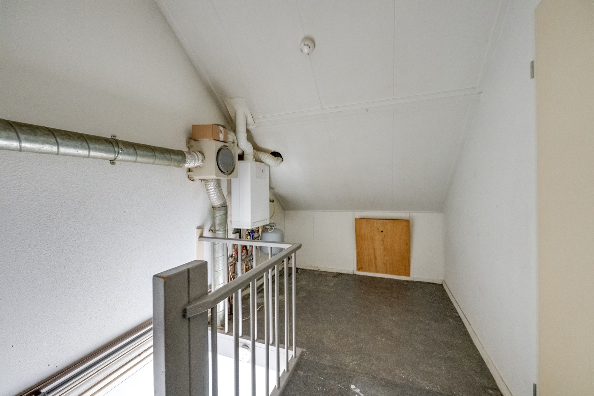 Via vaste trap bereikbare zolderverdieping. Op de voorzolder (5,09 m. x 2,33 m.) bevindt zich de cv-ketel (huur; Intergas 2017 € 40,18 per maand) en vindt u de wasaansluitingen en de installatie voor de mechanische ventilatie.