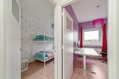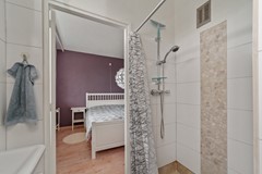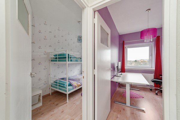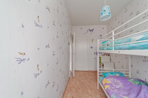 De hoofdslaapkamer voorzien van een vaste kast is eveneens aan de galerijzijde gelegen en biedt toegang tot de eenvoudige badkamer met douche en wastafel. De twee overige slaapkamers, waarvan één met vaste kast bevinden zich aan de achterzijde van de woning.