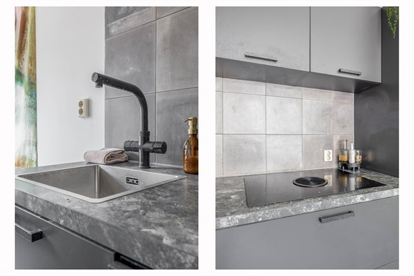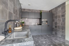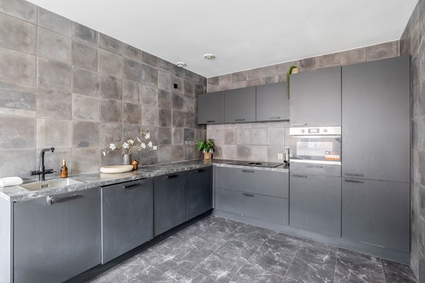 De woonkeuken is een fijne plek waar koken en gezelligheid samenkomen. Dankzij de vele onder- en bovenkasten heb je hier volop bergruimte en de keuken is uitgerust met diverse inbouwapparatuur, zoals een vaatwasser, inductiekookplaat met geïntegreerde afzuiging, combi-oven en koelkast. Of je nu snel iets klaarmaakt of uitgebreid kookt voor vrienden of familie: hier kan het allemaal.