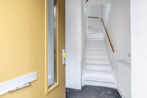 Via de entree kom je binnen in de hal met meterkast en een trapopgang naar de tweede verdieping waar het appartement zich bevindt.
