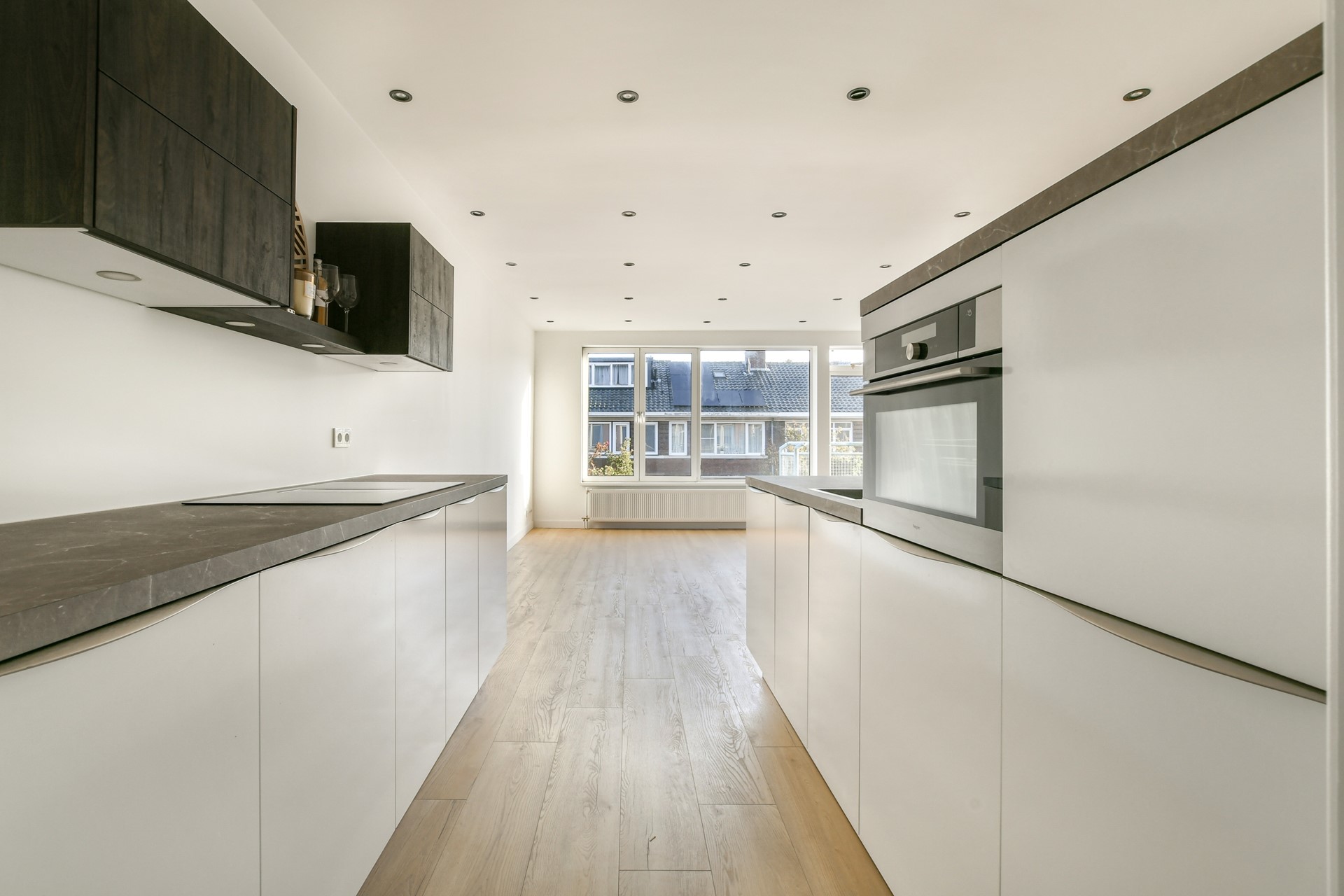 Deze recent gerenoveerde bovenwoning aan de Engelsestraat 28A2 is er eentje waar je meteen blij van wordt. Van de stijlvolle marmerlook badkamer tot de moderne keuken en warme vloer alles klopt hier.