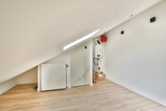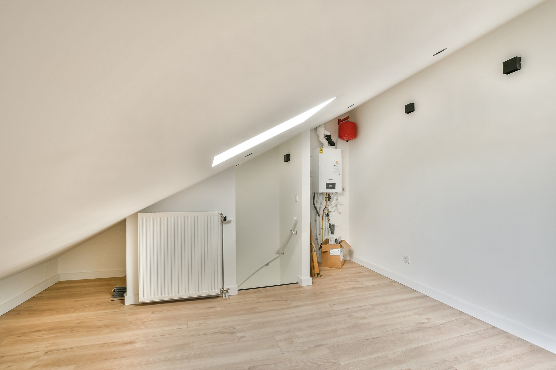 Op deze etage een multifunctionele ruimte die perfect te gebruiken is als extra slaapkamer, hobbyruimte of thuiswerkplek. Hier bevindt zich tevens de opstelplaats van de HR-combiketel (Remeha, 2025).