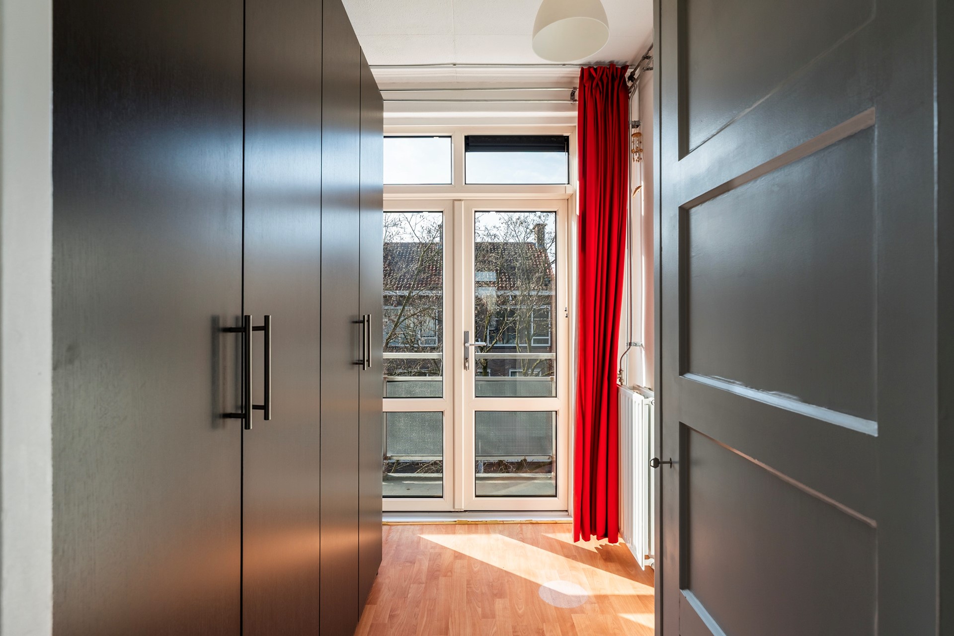 Slapen & Bergzolder: Het appartement beschikt over twee slaapkamers. De huidige bewoners hebben één kamer getransformeerd tot een royale walk-in closet, maar deze is eenvoudig weer als volwaardige slaap- of werkkamer in te richten.