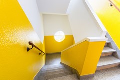 Begane grond: gemeenschappelijke entree met brievenbussen en trappenhuis. Op de begane grond vind je tevens de ruime privéberging van ca. 5 m², ideaal voor je fiets of als extra opslagruimte.