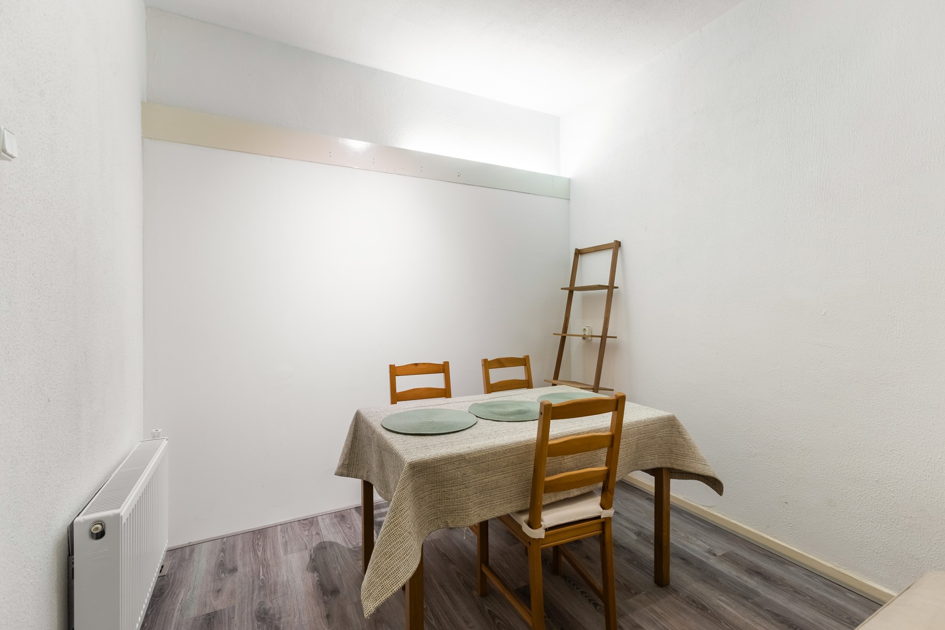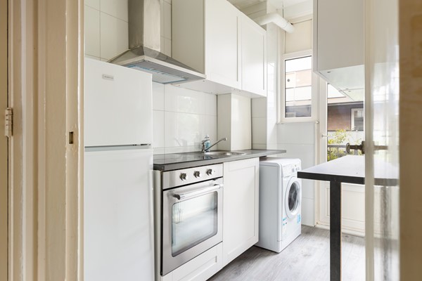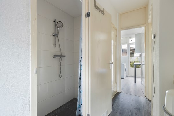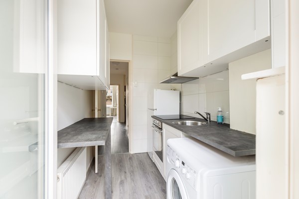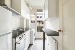 Daarnaast bevindt zich de keuken uit 2017 welke ook toegang geeft tot het balkon. De keuken is compact maar praktisch ingericht, voorzien van inductiekookplaat, spoelbak en aansluiting voor wasmachine en cv-ketel (Remeha Tzerra, 2017). De doucheruimte is eveneens in 2017 vernieuwd.