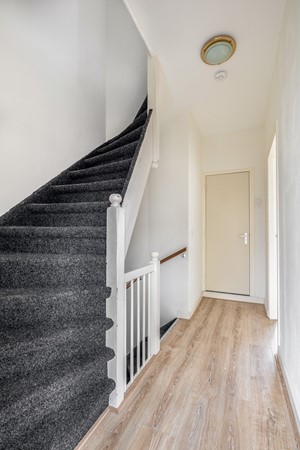 Je komt binnen via de entree op de begane grond. Hier vind je de trap naar boven en het toilet. Vanuit de hal loop je door naar de ruime woonkamer, waar direct opvalt hoeveel leefruimte hier aanwezig is. De woonkamer is heerlijk licht en biedt volop mogelijkheden om hier een gezellige zithoek én een royale eethoek te creëren.