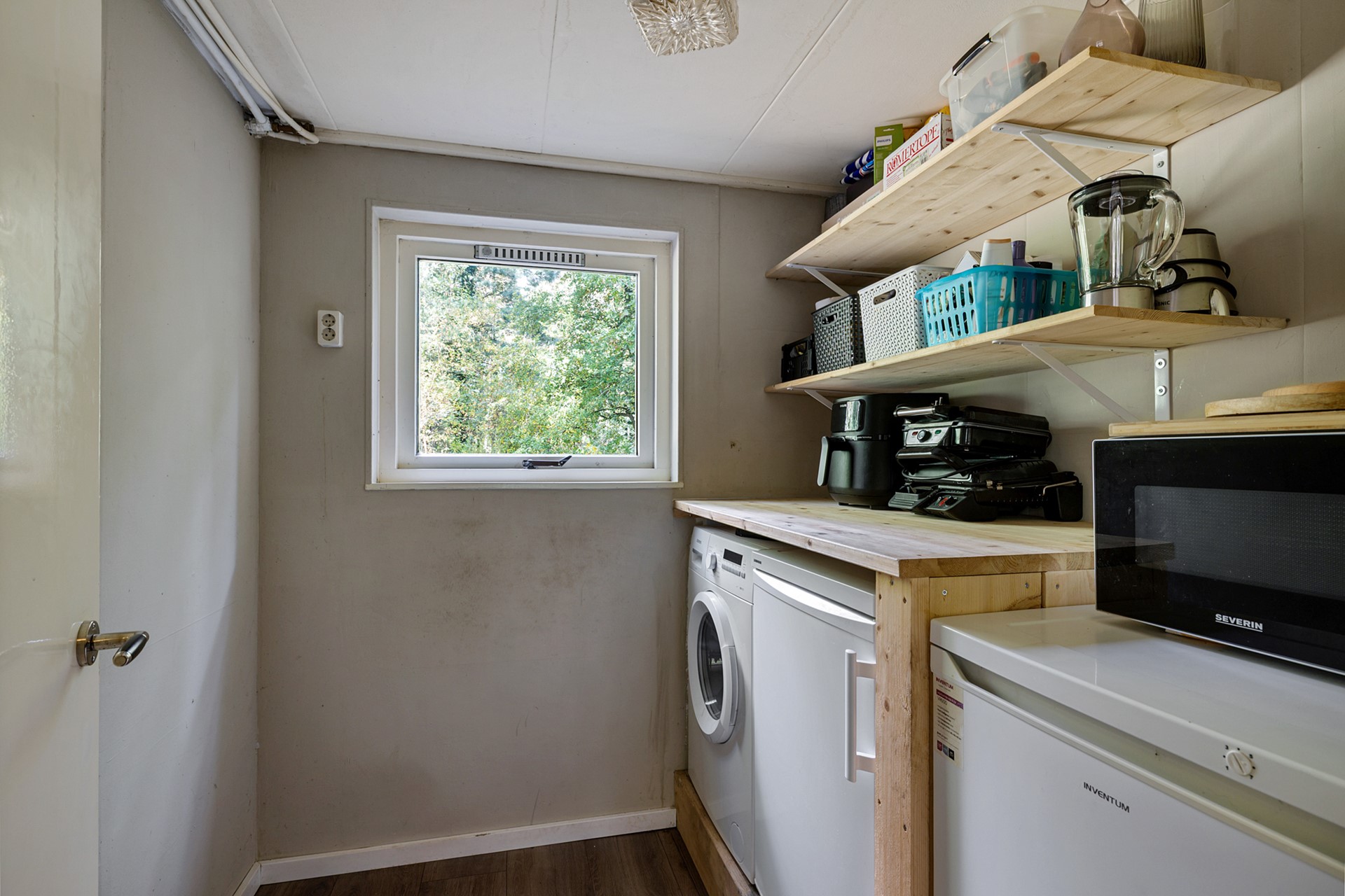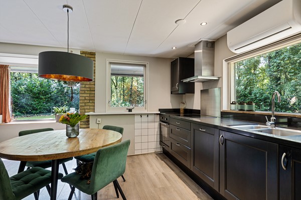 De keuken is voorzien van alle moderne gemakken zoals een inbouw inductiekookplaat met afzuigkap, dubbele wasbak, koelkast, vaatwasser en de in 2024 geplaatste oven. Verder vind je boven de keuken ook de split-airco unit (2022) waarmee je de bungalow nog verder mee kunt verwarmen en uiteraard ook mee kunt koelen.