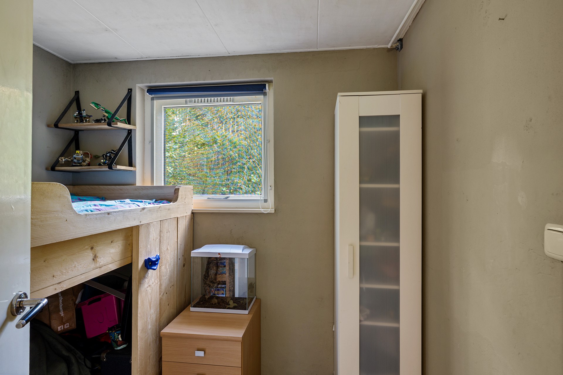 Aansluiten aan de keuken, vind je de eerste (kleinere) slaapkamer. Deze slaapkamer is prima geschikt als kinderkamer of als thuiskantoor. Naast deze slaapkamer, aangrenzend aan de woonkamer, bevind zich de master bedroom. Deze kamer is ruim genoeg voor een groot tweepersoonsbed en door de inbouwkasten met schuifdeuren, heb je hier genoeg plek voor al je kleding.
