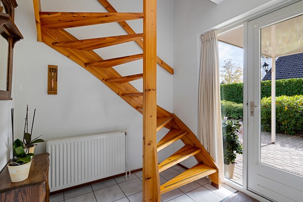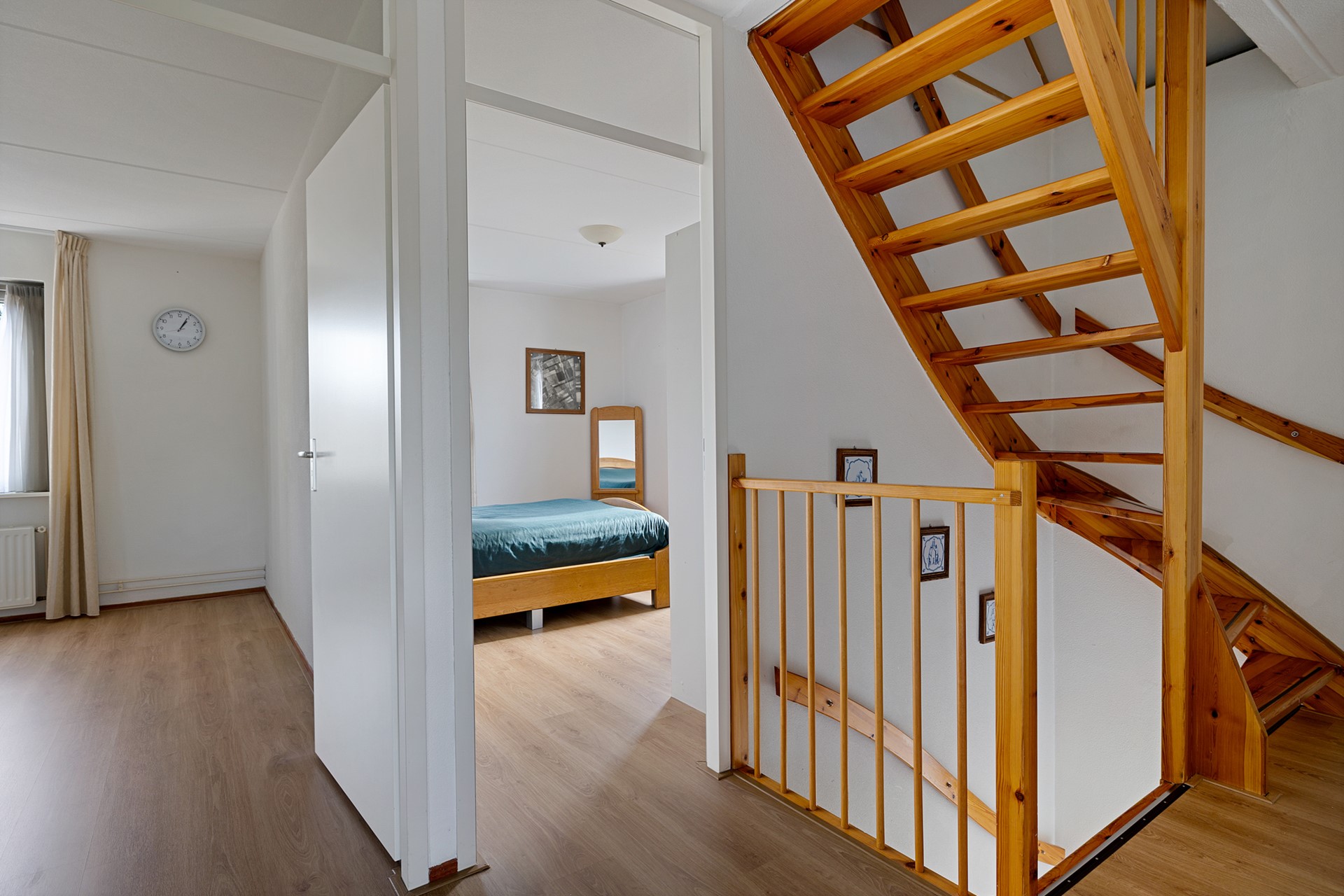 Vanaf de keuken is de hal weer bereikbaar en bereik je doormiddel van de open trap de overloop op de eerste verdieping. Hier bevinden zich drie ruime slaapkamers, een extra bergruimte en een grote badkamer.