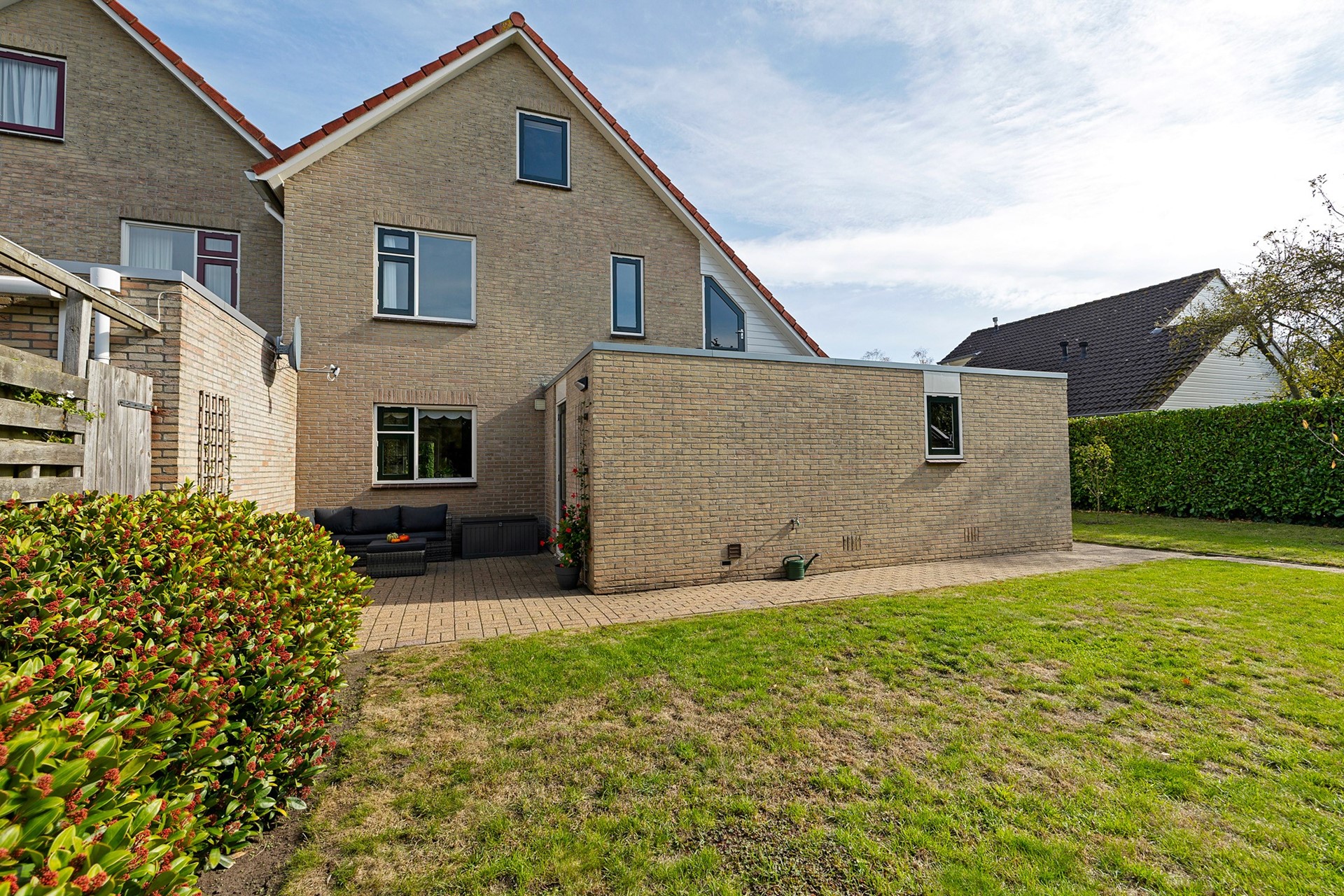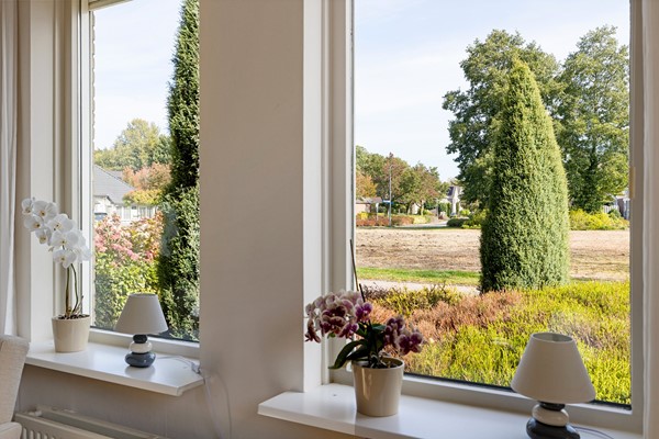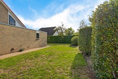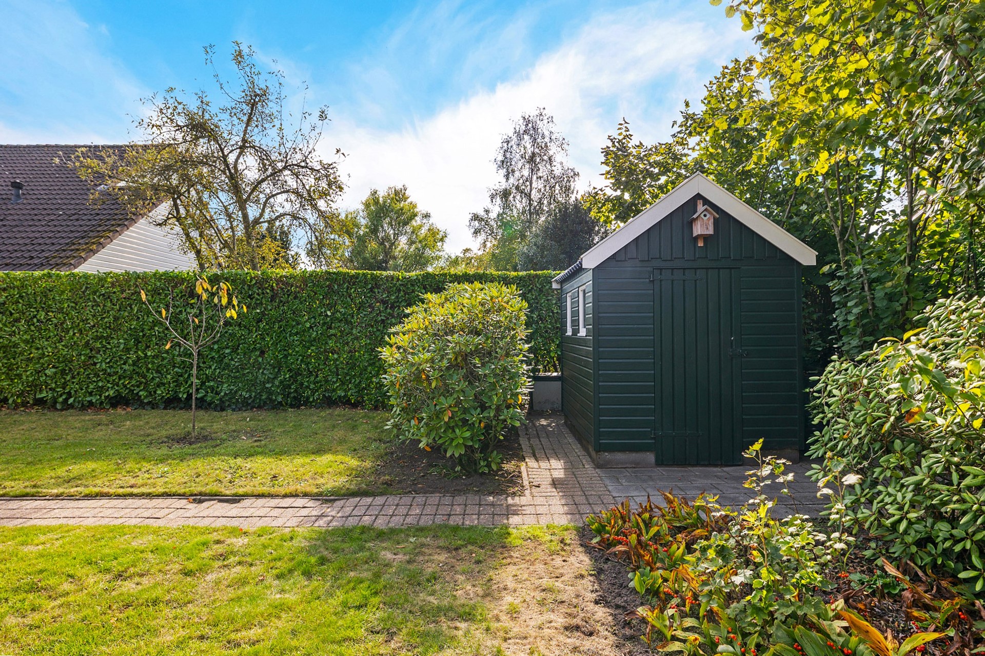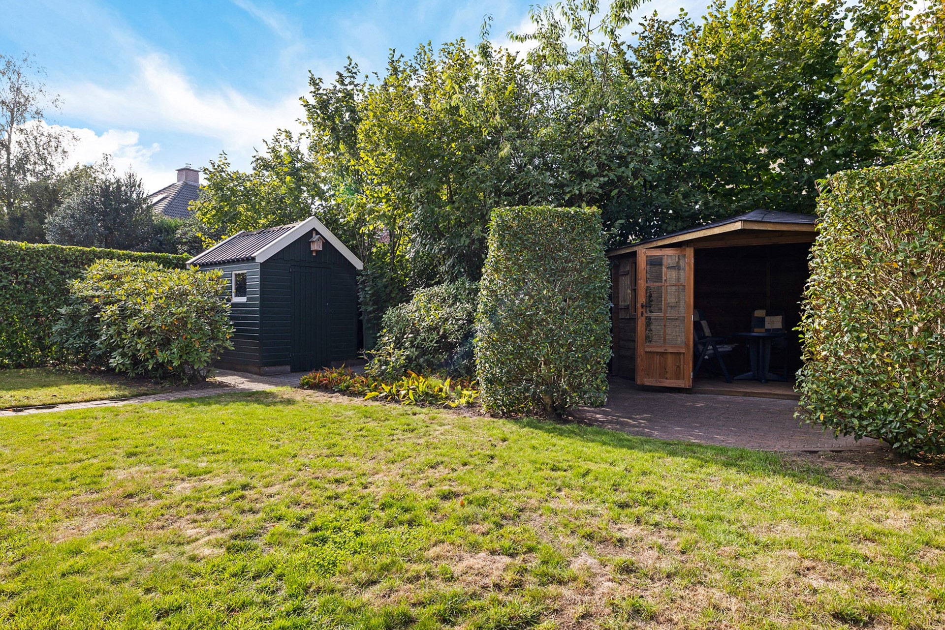 Vanaf de bijkeuken is de achtertuin bereikbaar. In de tuin kan je in alle rust en met veel privacy genieten van al het groen om je heen. De groene tuin op het westen, synoniem voor middag- en avondzon, is voorzien van gras, verschillende borders met beplanting, een terras, een tuinhuis voor je tuinset en een schuur voor je tuingereedschap. Ook aan de zijkant van de woning heb je nog een ruim stuk tuin, ook hier heb je verschillende mogelijkheden. Aan de volgende eigenaar om deze tuin naar eigen smaak in te richten.