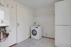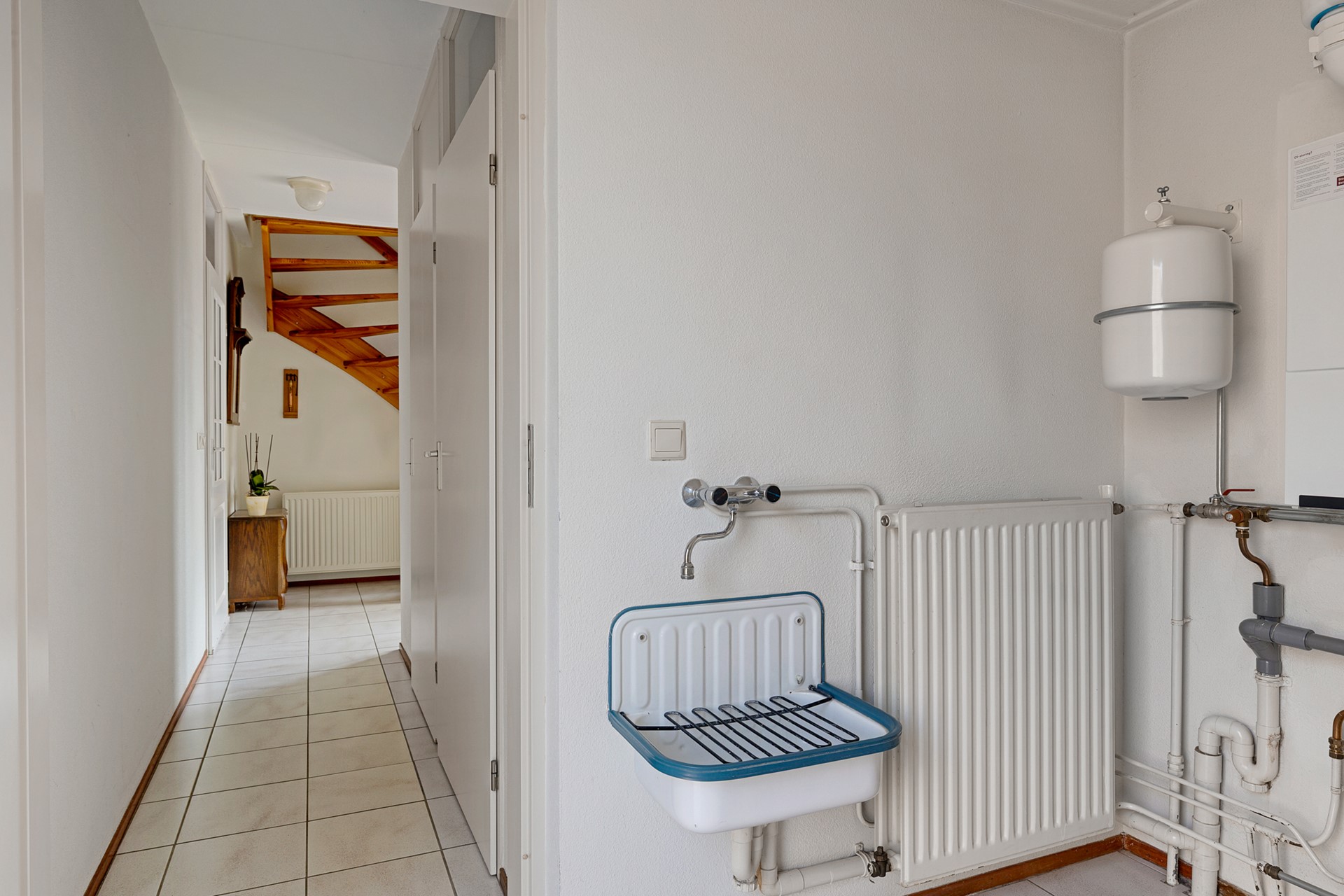 In de bijkeuken vind je naast de aansluitingen voor een wasmachine en droger ook een uitstortgootsteen en de cv-ketel. Middels de tuindeur stap je het terras op.