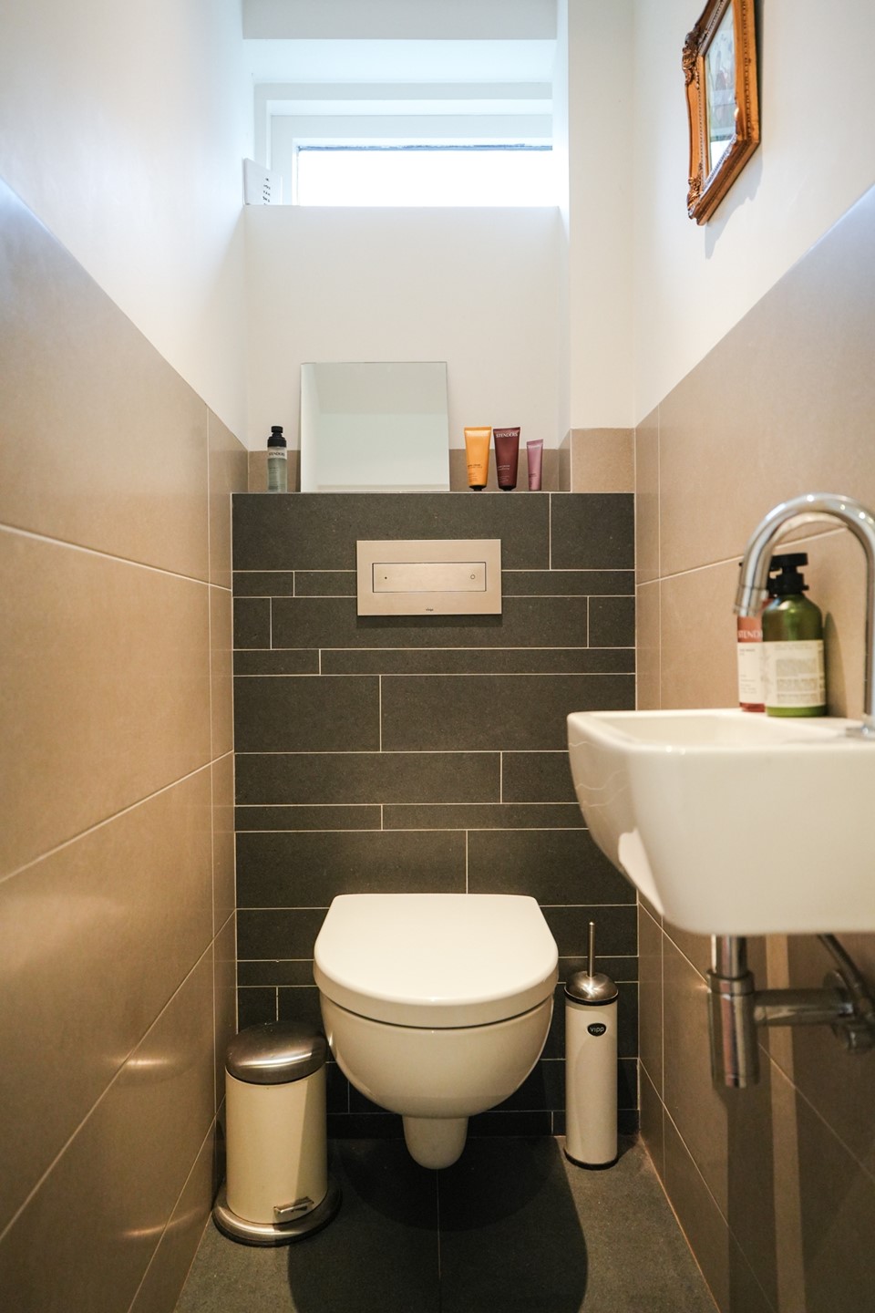 The covered entrance is reached via the front garden and driveway. The entrance hall provides access to the toilet with washbasin, the meter cupboard, the staircase to the first floor and the living room.