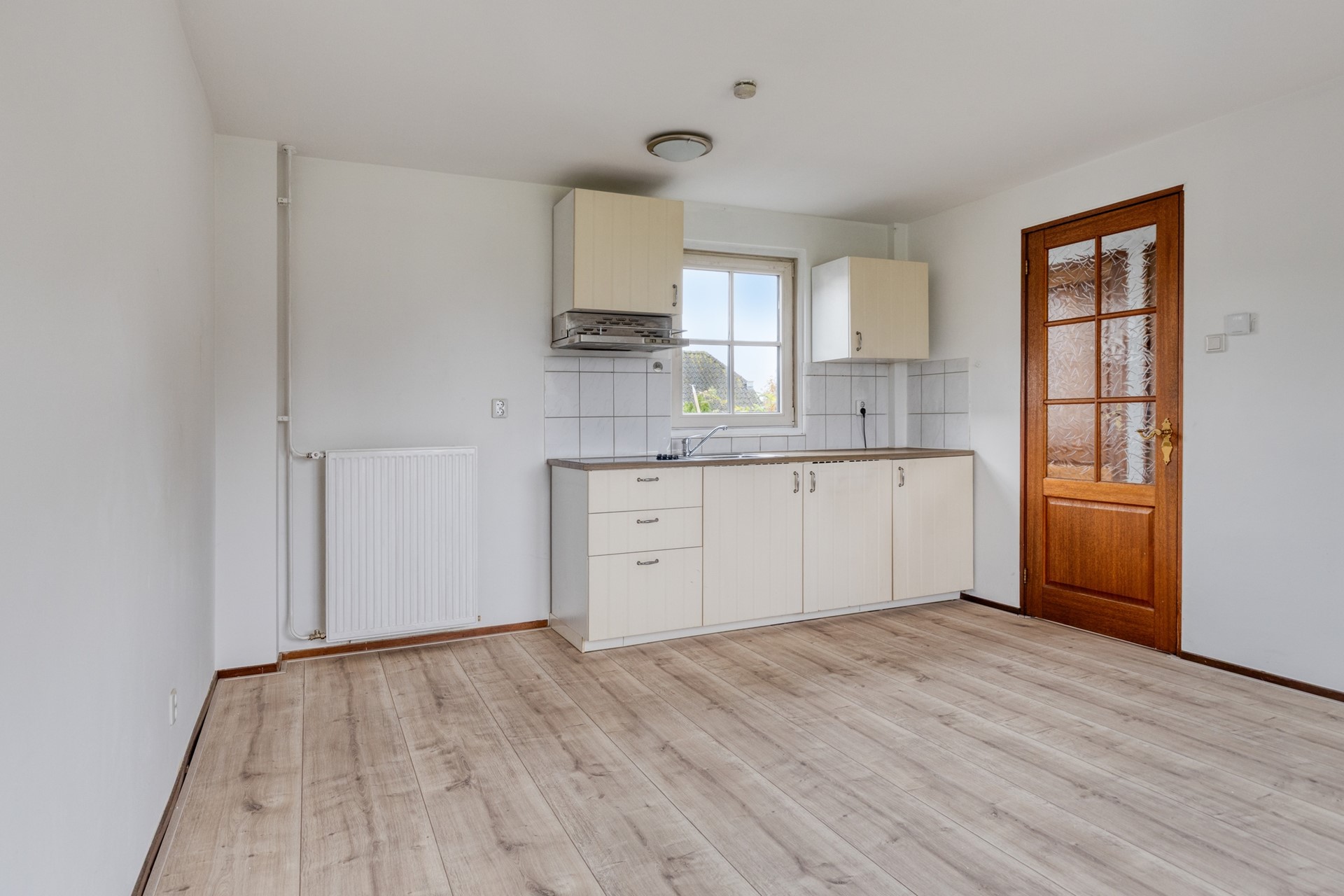 Entree, hal die toegang hal met toegang tot alle vertrekken, woonkamer met open keuken voorzien van diverse inbouwapparatuur, te weten: koelkast met vriesvakje, keramische kookplaat en afzuigkap, slaapkamer, badkamer voorzien van douchecabine, wastafelmeubel en witgoedaansluiting.