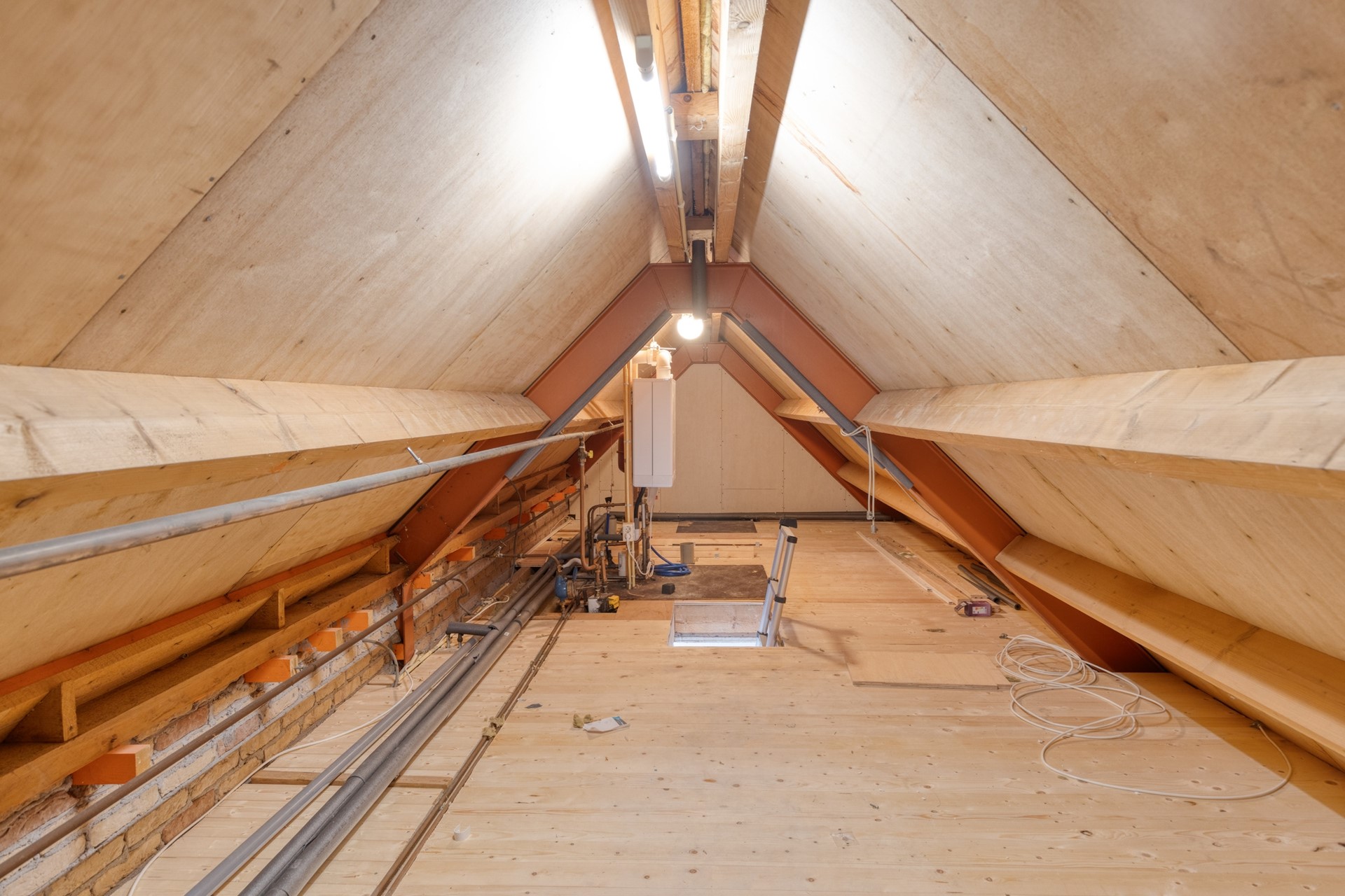 Middels een trap bereik je de ruime vliering, waar zich de CV-ketel opstelling bevindt.