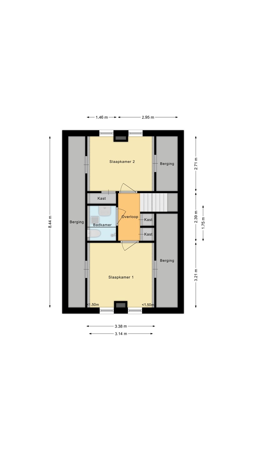 - Slaapkamer met inbouwkast en bergruimte achter de knieschotten